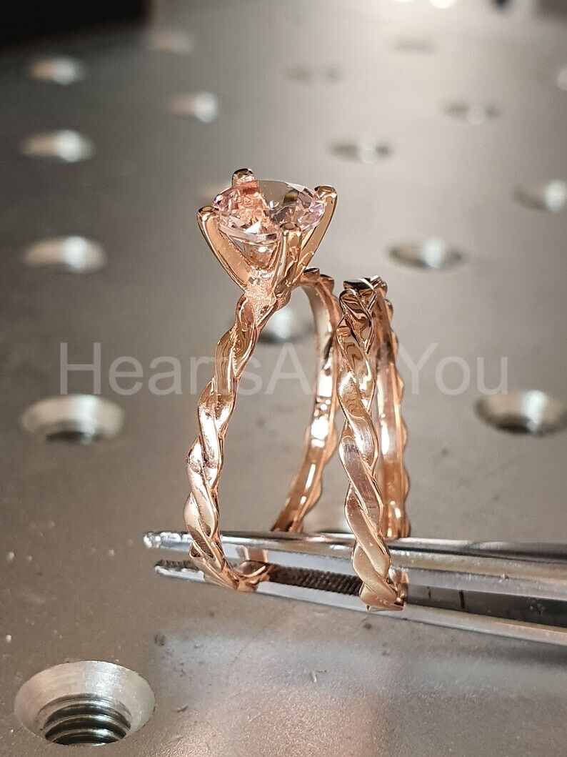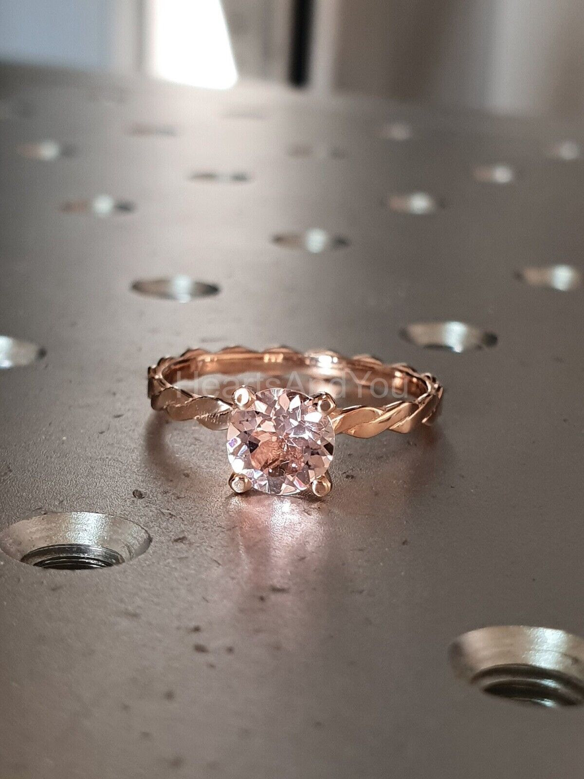 1ct Round Cut Simulated Peach Morganite Minimalist Twist Ring 14k Rose Gold Plated