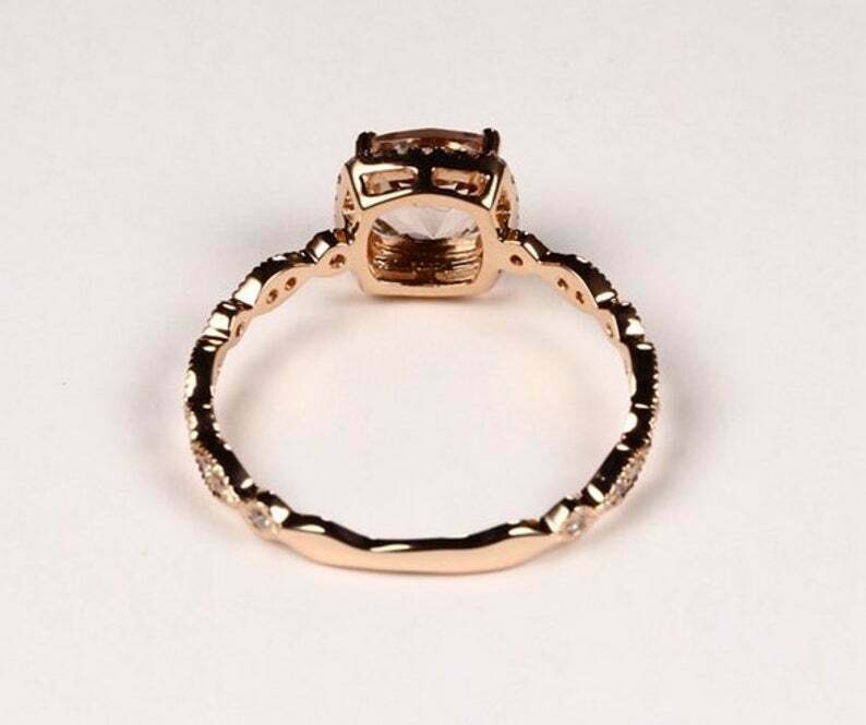 2.15ct Engagement Ring Cushion Cut Peach Morganite Halo 14k Yellow Gold Finish