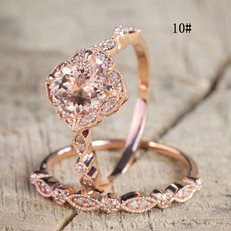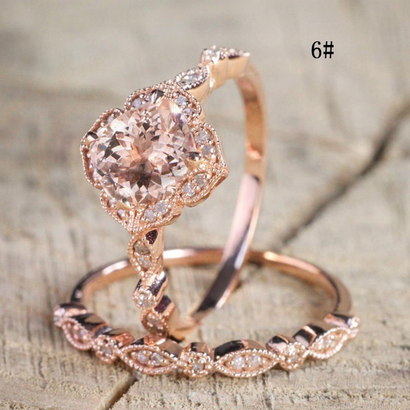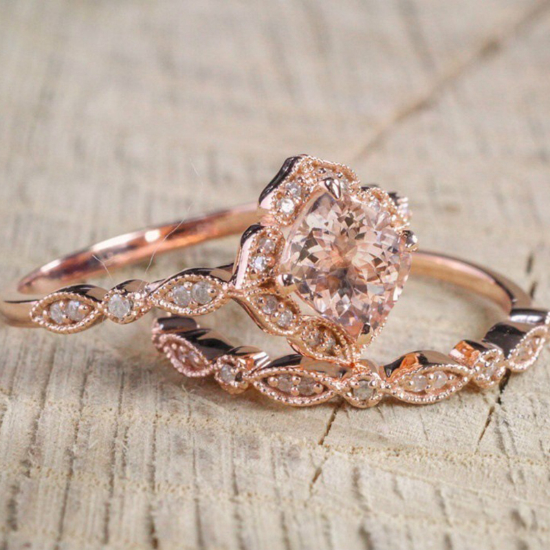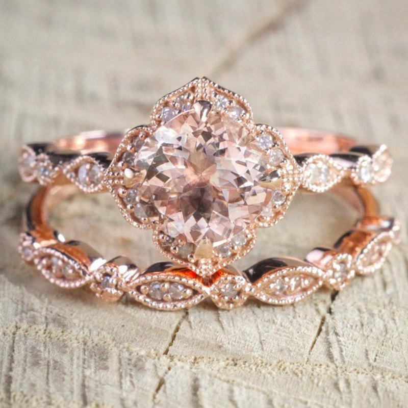 2.1Ct Cushion Cut Peach Morganite Bridal Set Engagement Ring 18K Rose Gold Over