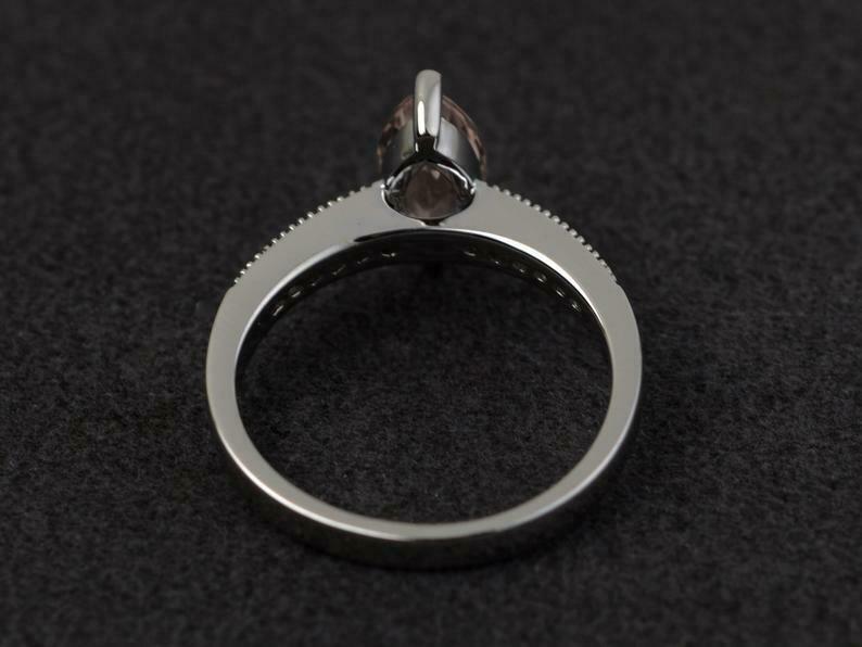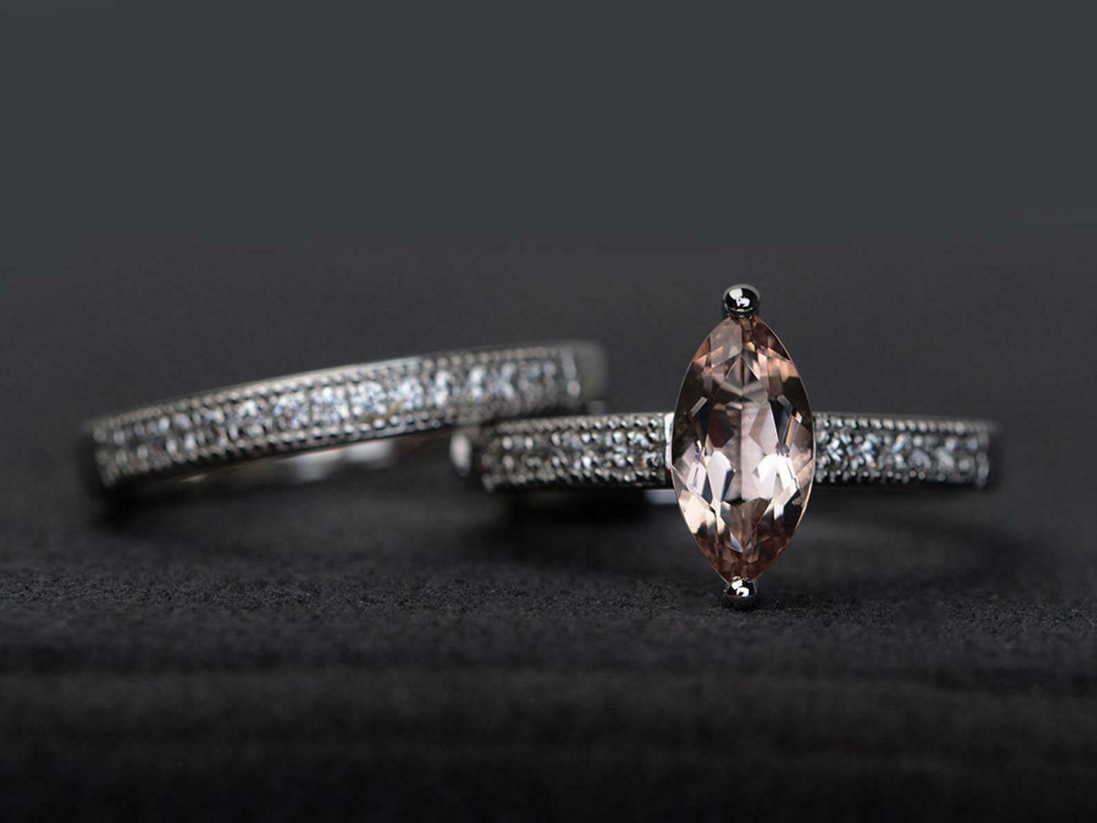 2.1ct Engagement Ring Marquise Cut Peach Morganite Bridal Set 14k WhiteGold Over