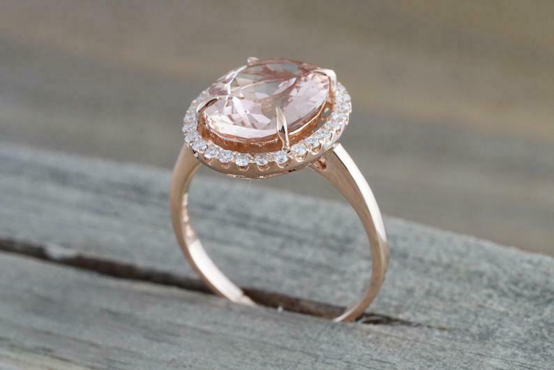 2.1ct Oval Cut Peach Morganite Engagement Ring 14k Rose Gold Finish Diamond Halo