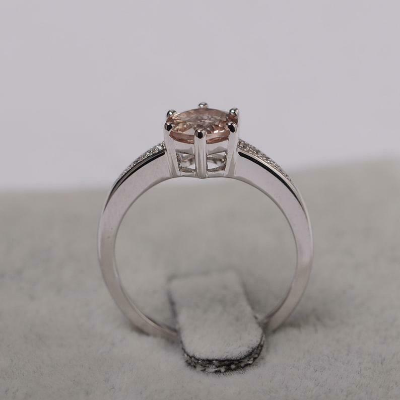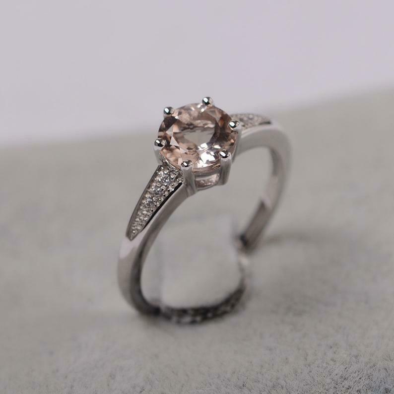 2.1ct Round Cut Peach Morganite Solitaire with Accent Ring 14k White Gold Finish