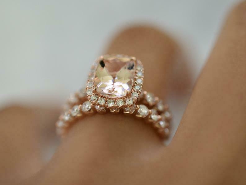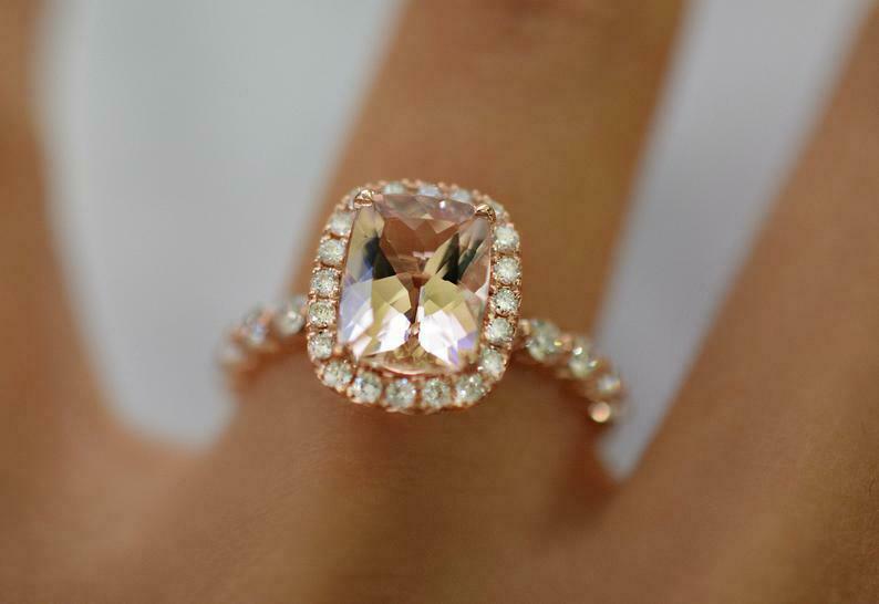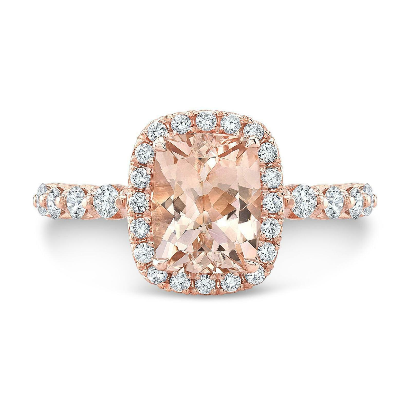 2.2ct Cushion Cut Morganite Engagement Ring 14k Rose Gold Finish Diamond Halo
