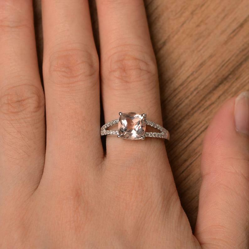 2.2ct Engagement Ring Cushion Cut Peach Morganite Split Shank 14k White Gold Over