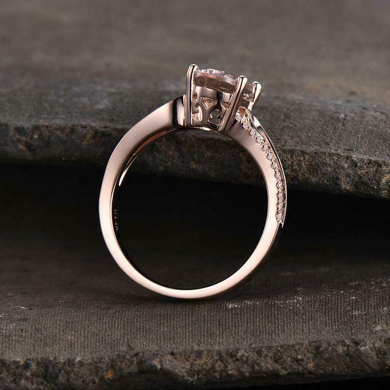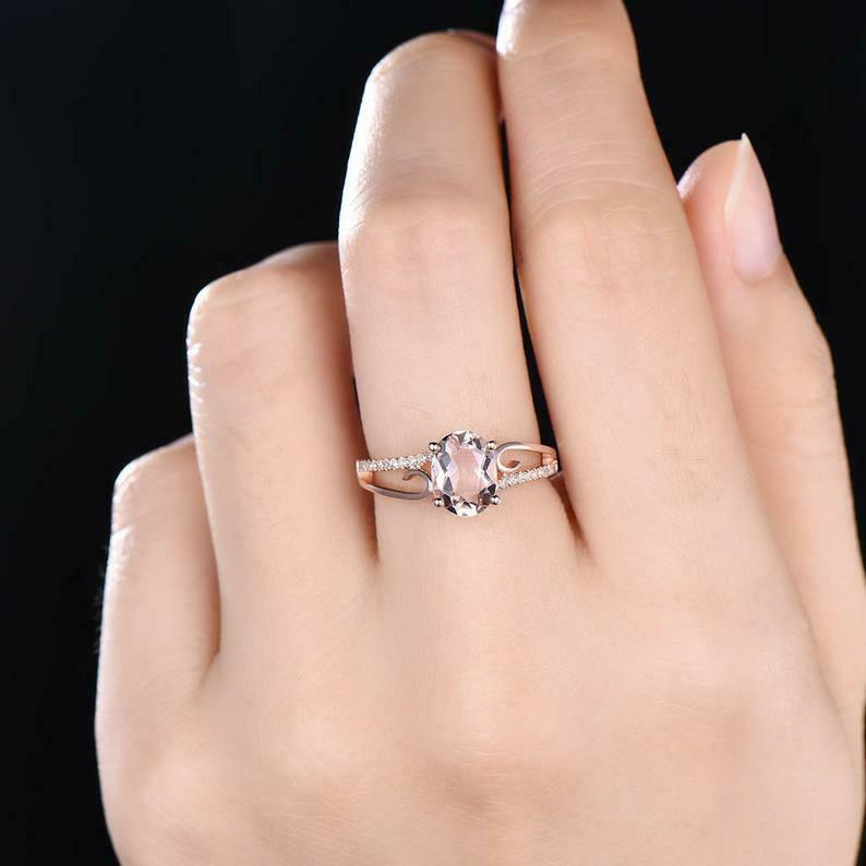 2.2ct Engagement Ring Oval Cut Peach Morganite Split Shank 14k Rose Gold Finish