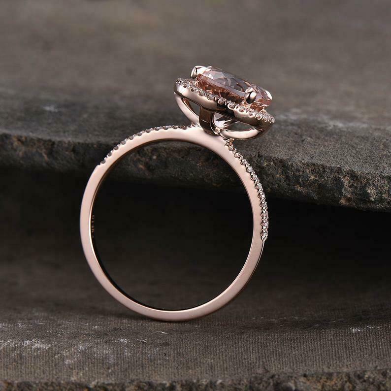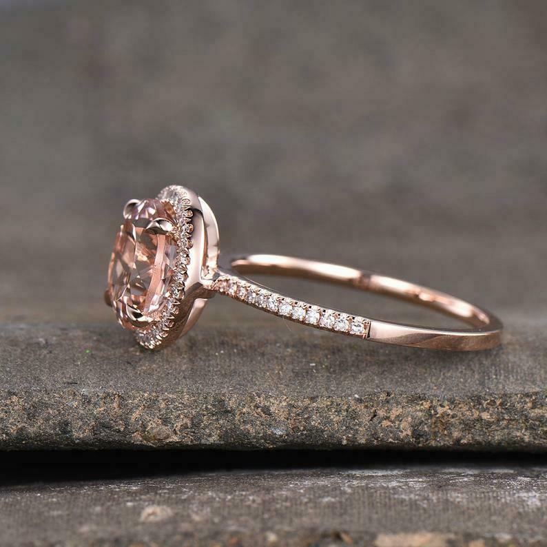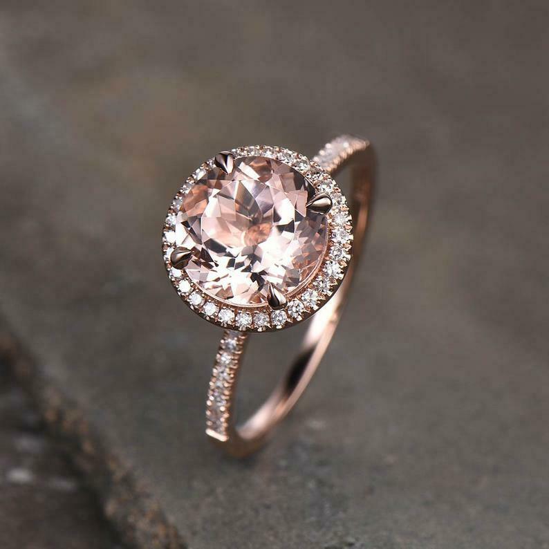 2.2ct Engagement Ring Round Cut Peach Morganite Halo 14k Rose Gold Finish