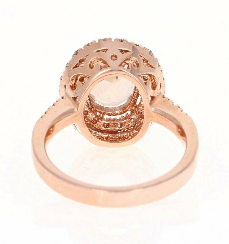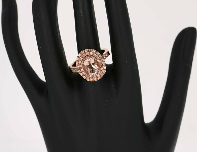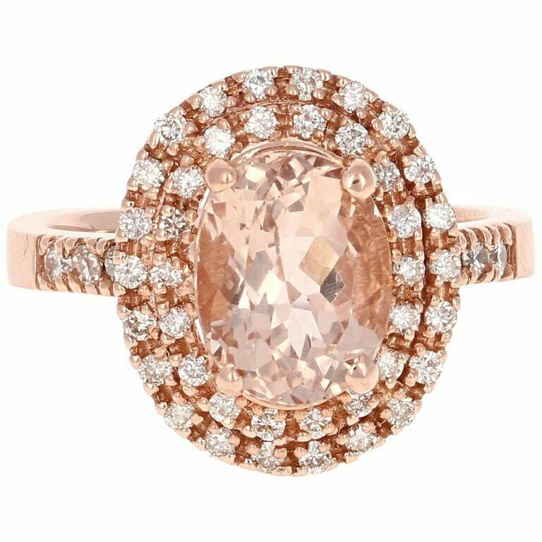 2.2ct Oval Cut Peach Morganite Engagement Ring Double Halo 14k Rose Gold Finish