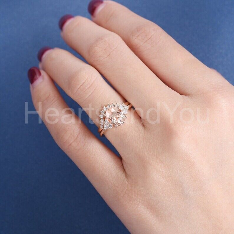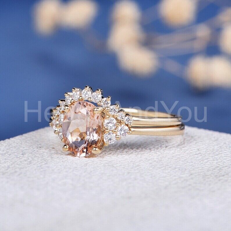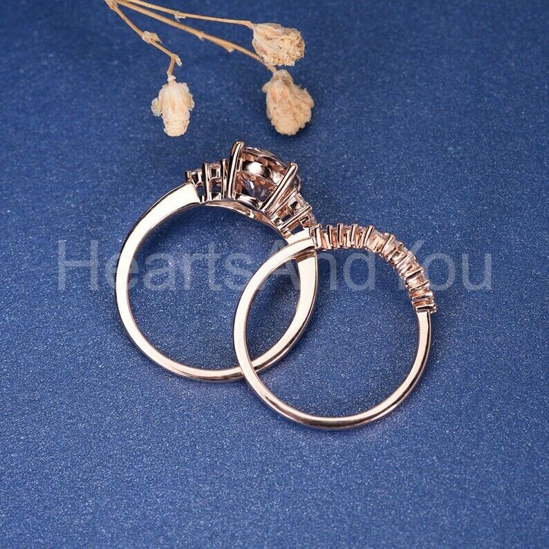 2.2ct Oval Cut Simulated Peach Morganite Curved Band Bridal Set 14k Rose Gold Plated