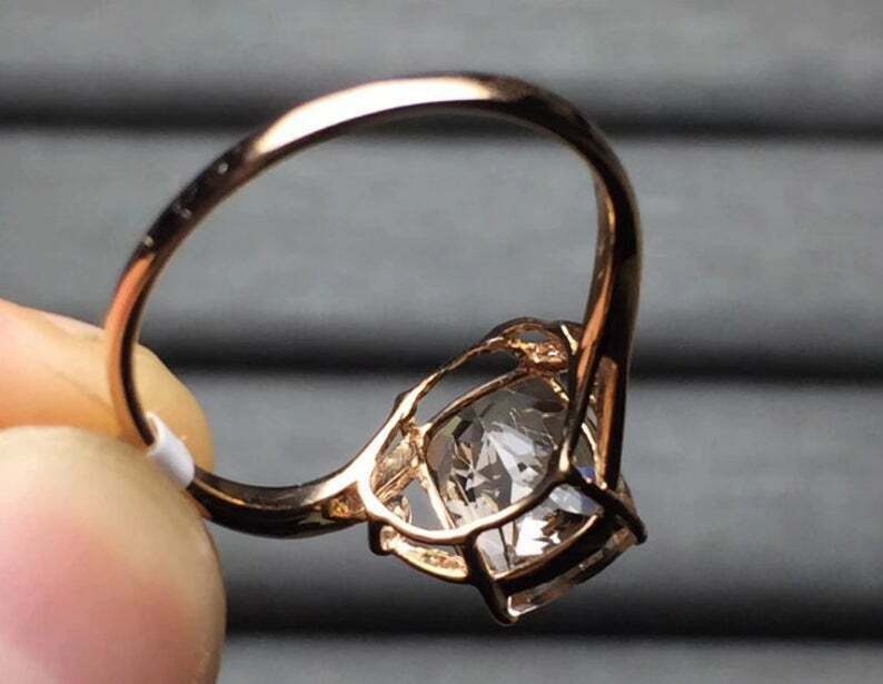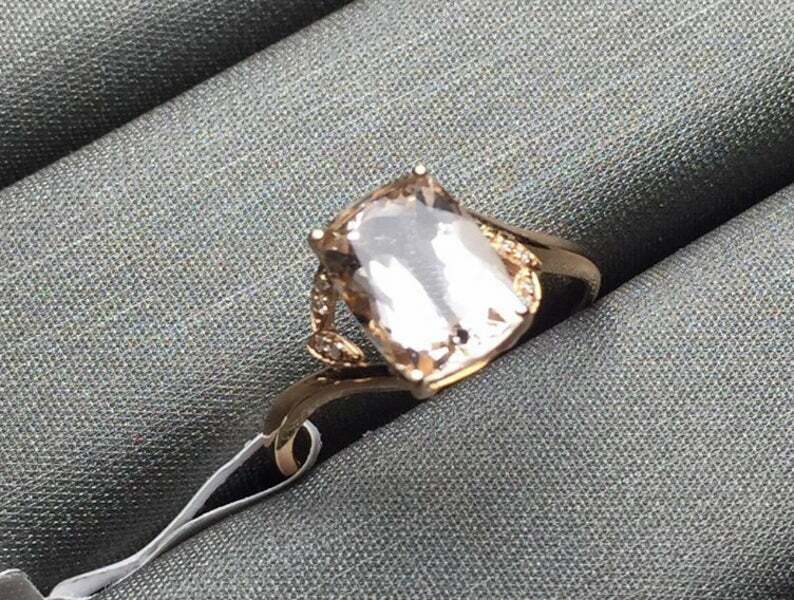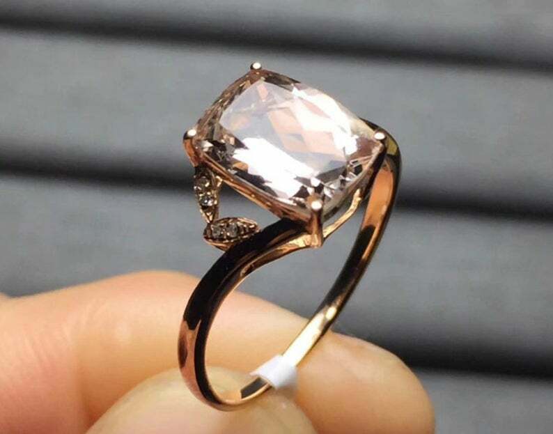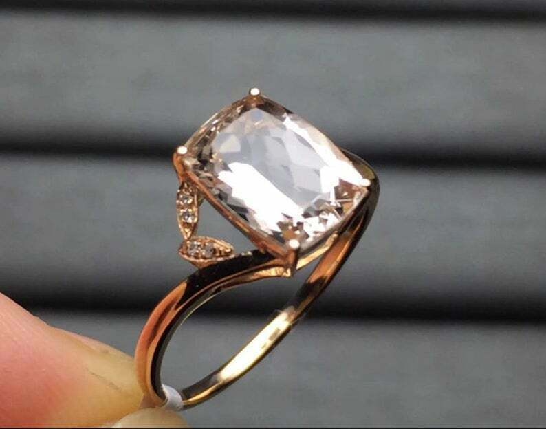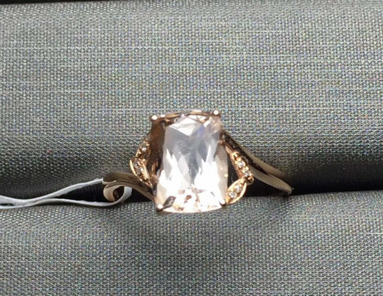 2.3ct Cushion Cut Peach Morganite Swirl Twist Solitaire Ring 14k Yellow Gold Finish