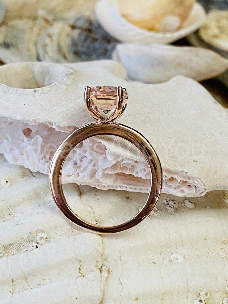 2.3ct Cushion Cut Simulated Peach Morganite Solitaire Ring 14k White Gold Plated