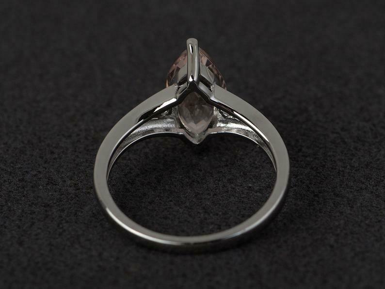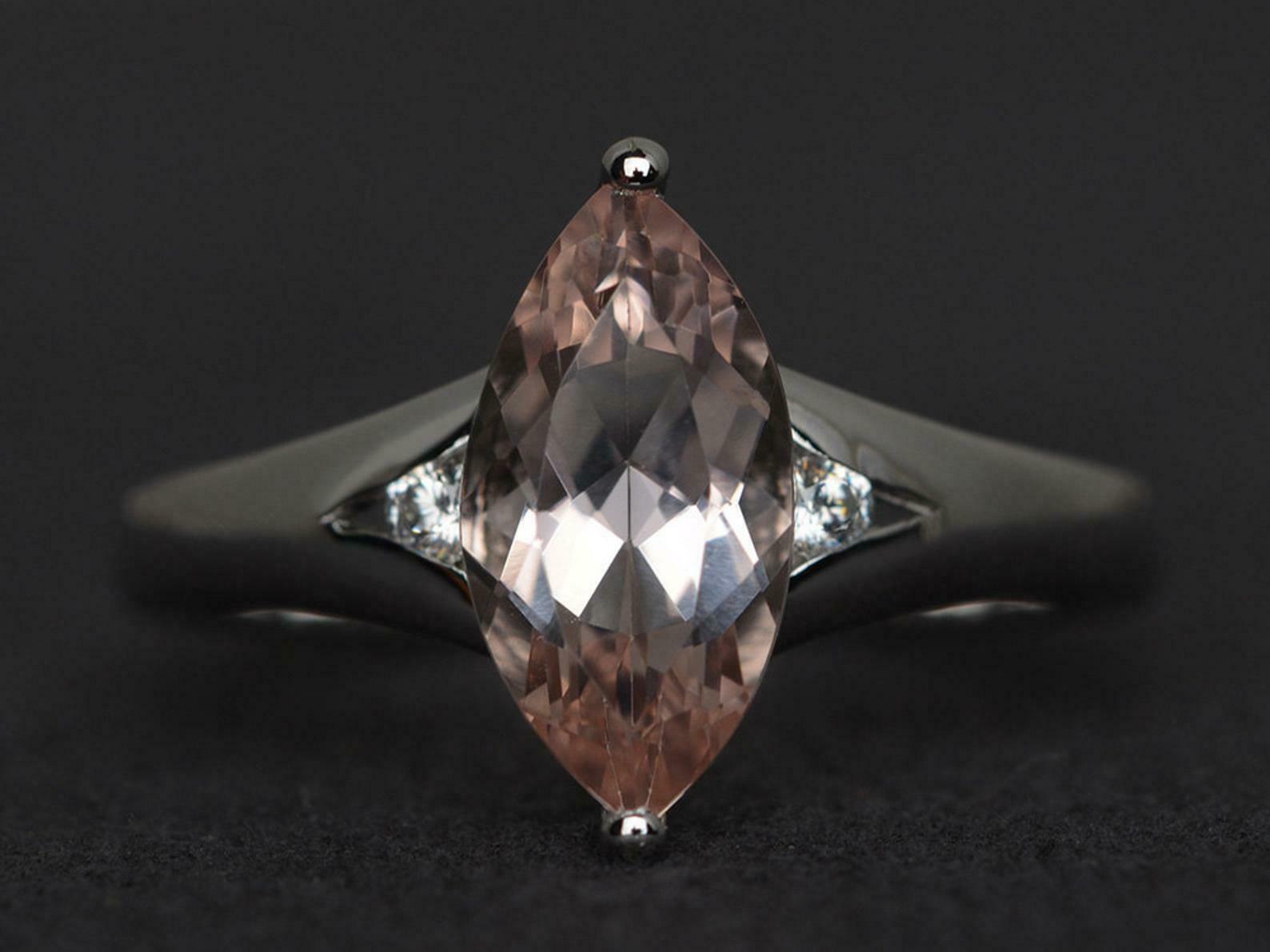 2.3ct Engagement Ring Marquise Cut Peach Morganite Trilogy 14k White Gold Finish