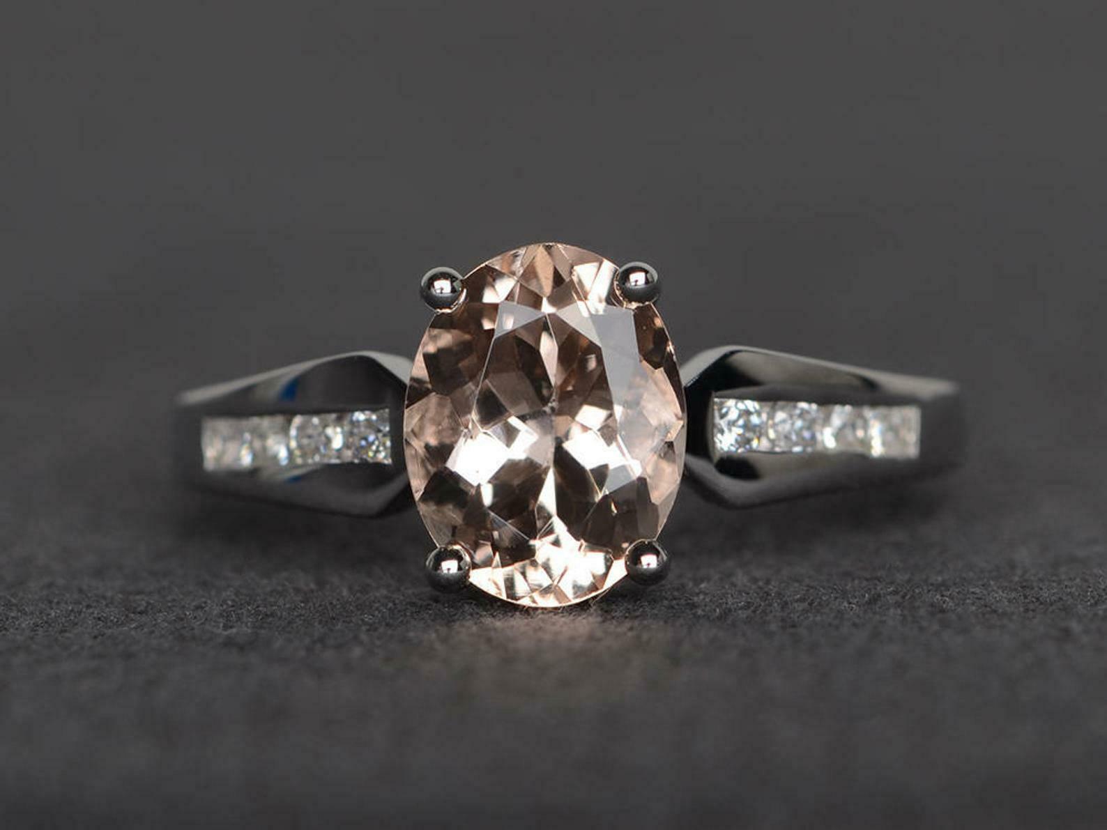 2.3ct Engagement Ring Oval Cut Peach Morganite Diamond Accent 14k WhiteGold Over