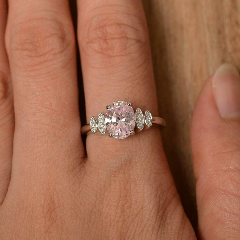 2.3ct Engagement Ring Oval Peach Morganite Stylish Art Deco 14k White Gold Finish
