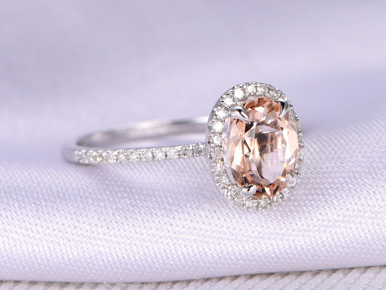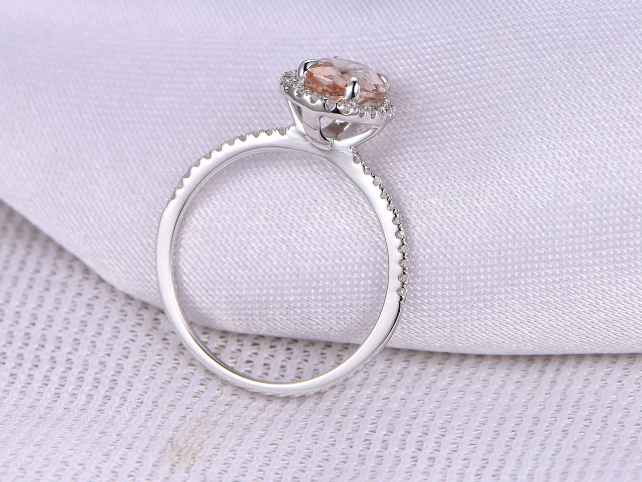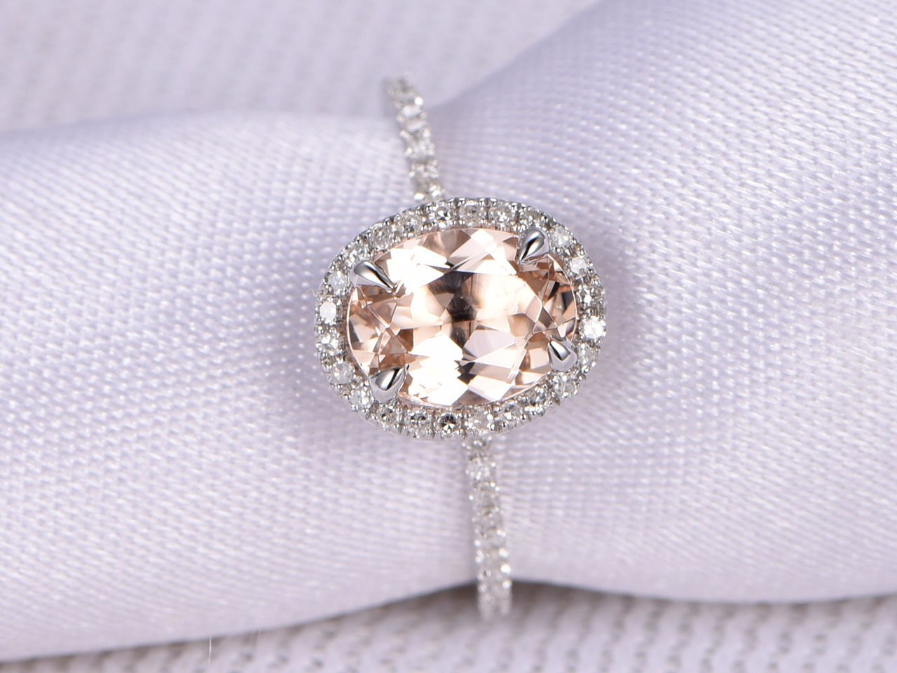 2.3ct Oval Cut Peach Morganite Diamond Halo Solitaire Ring 14k White Gold Finish