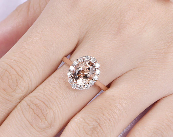 2.3ct Oval Cut Peach Morganite Engagement Ring Diamond Halo 14k Rose Gold Finish