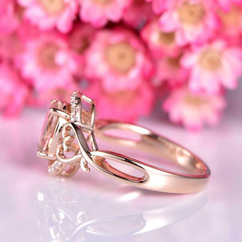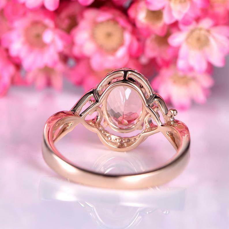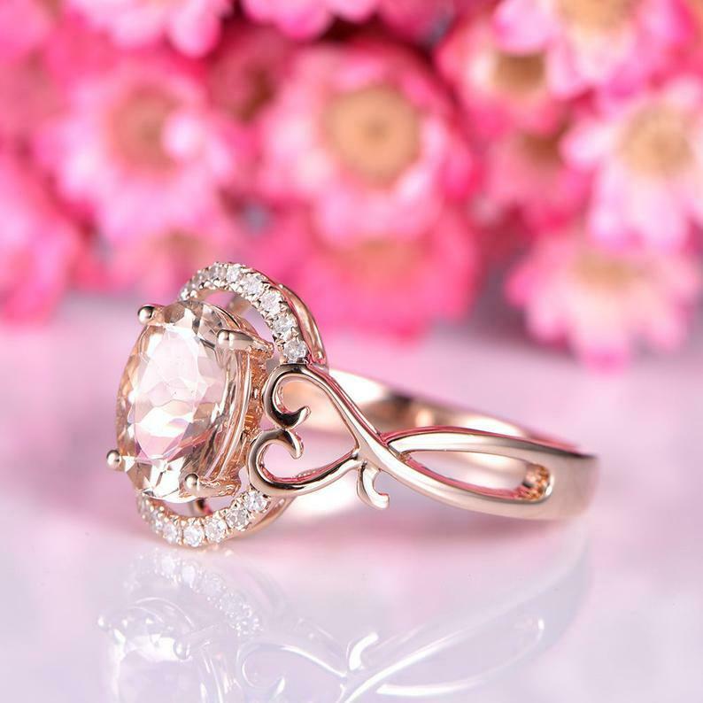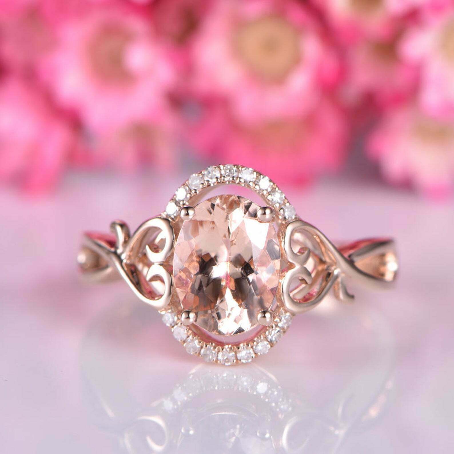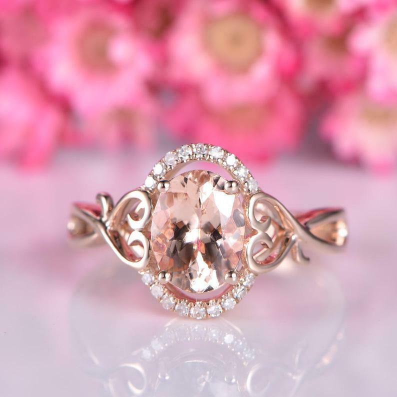 2.3ct Oval Cut Peach Morganite Stylish Halo Filigree Ring 14k Rose Gold Finish