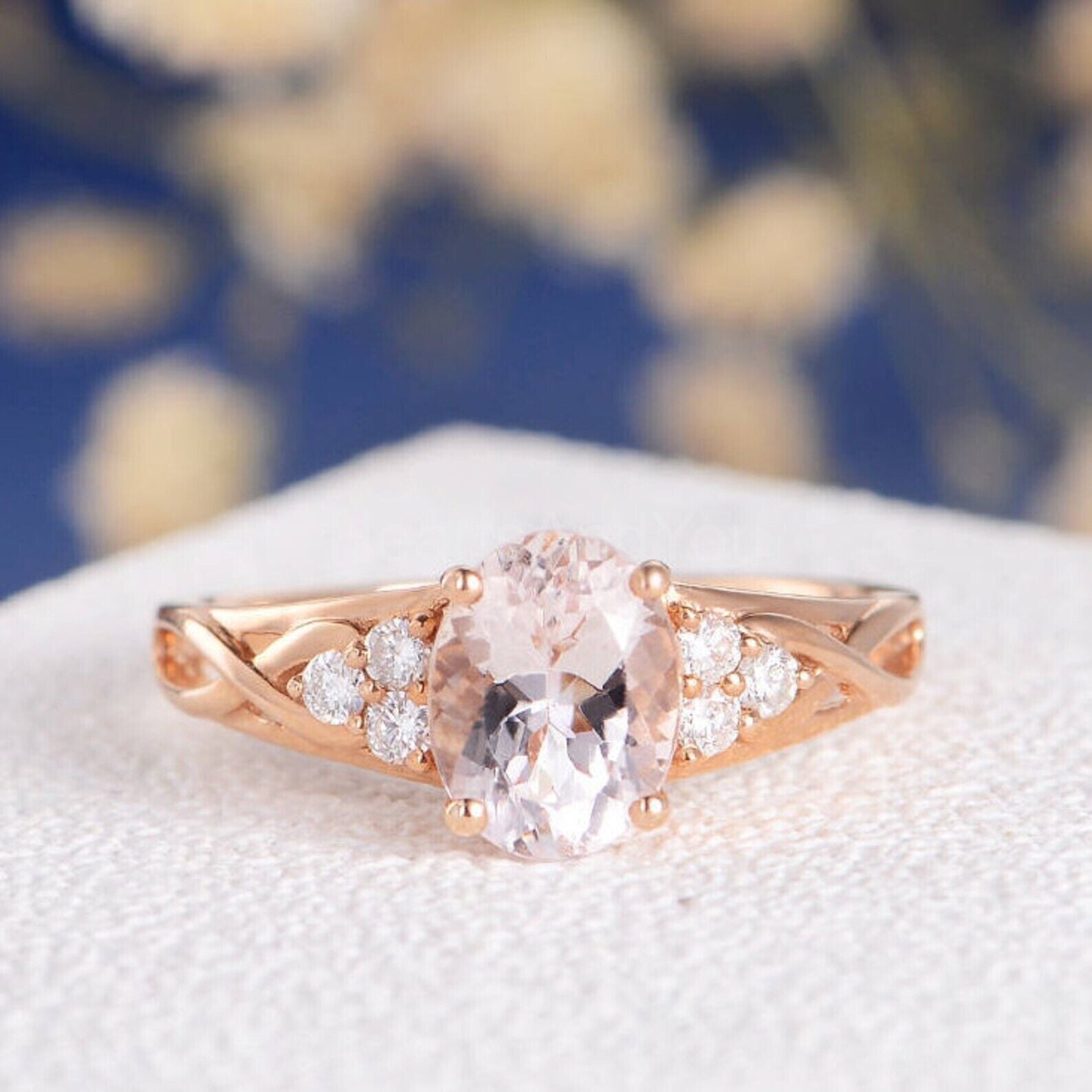 2.3ct Oval Cut Simulated Morganite Infinity Engagement Ring 14k Rose Gold Plated