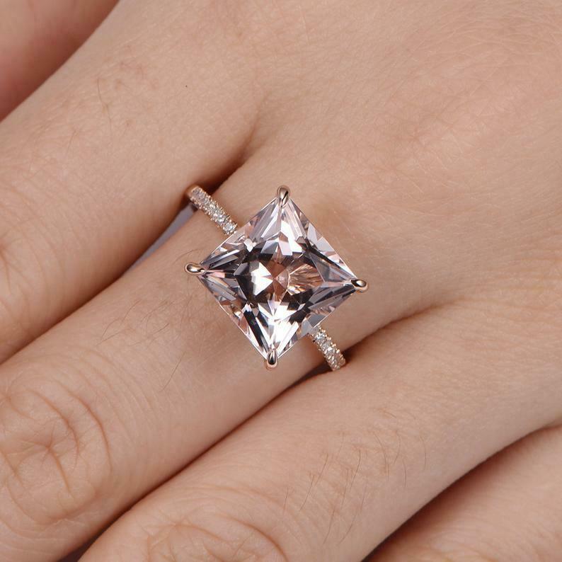 2.3ct Princess Cut Morganite Diamond Accents Solitaire Ring 14k Rose Gold Finish