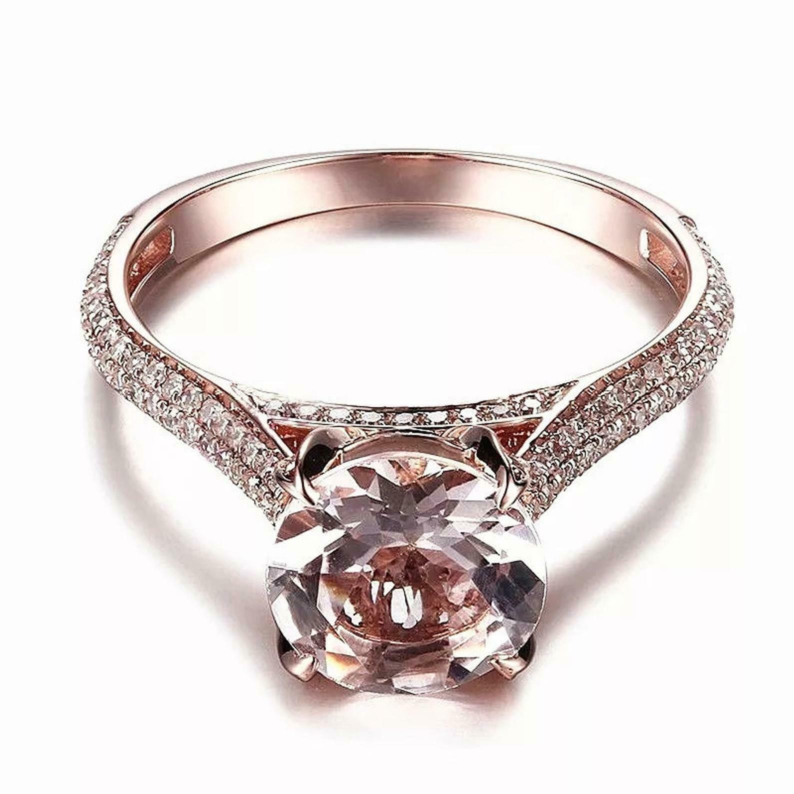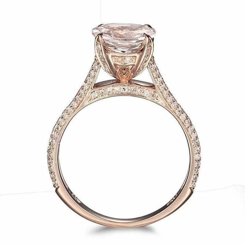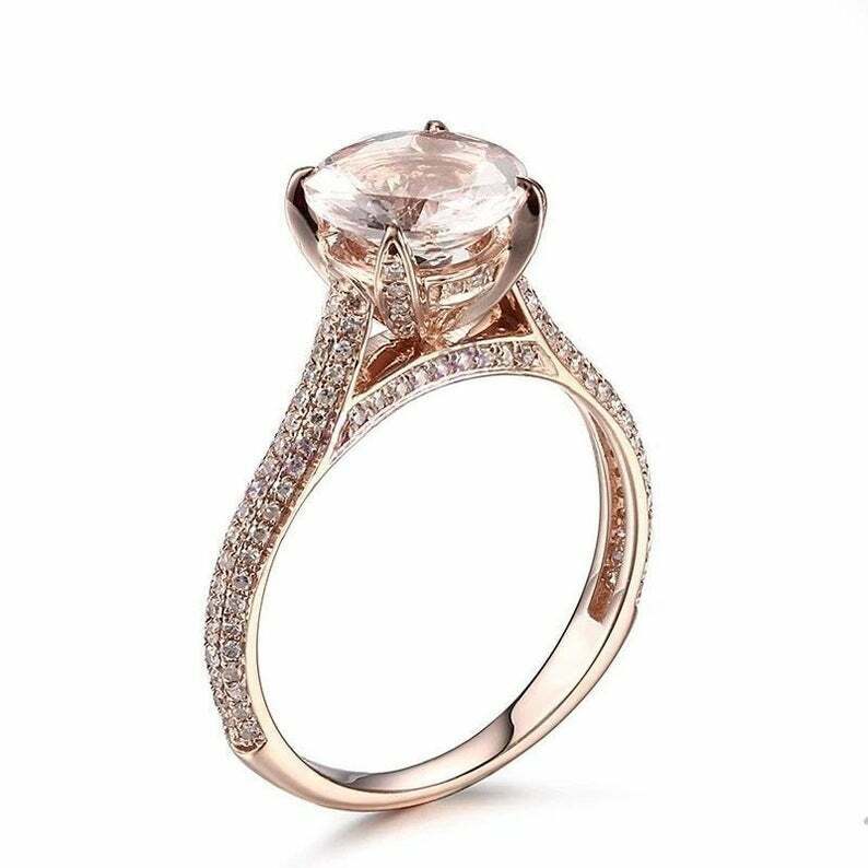 2.3ct Round Cut Peach Morganite Diamond Cluster Accent Ring 14k Rose Gold Finish