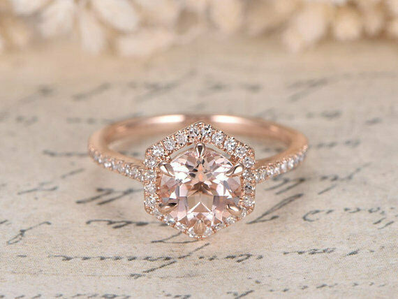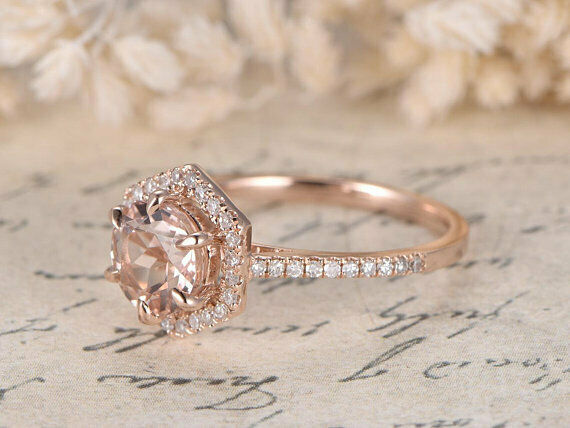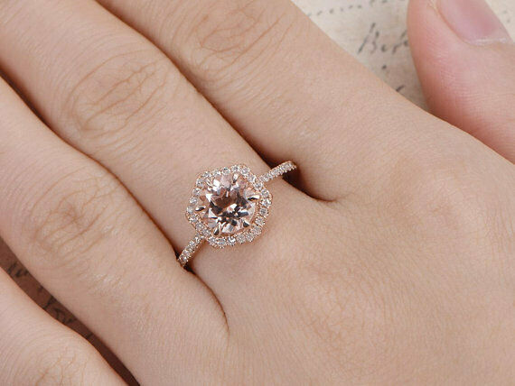 2.3ct Round Cut Peach Morganite Halo Engagement Ring 14k Rose Gold Finish