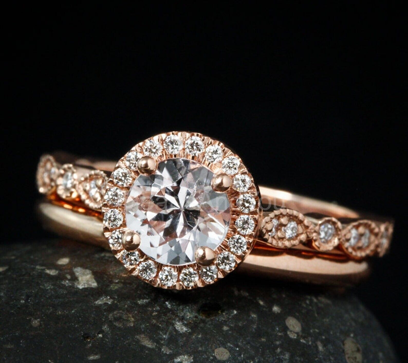 2.3ct Round Cut Simulated Morganite Halo Solitaire Ring Set 14k Rose Gold Plated