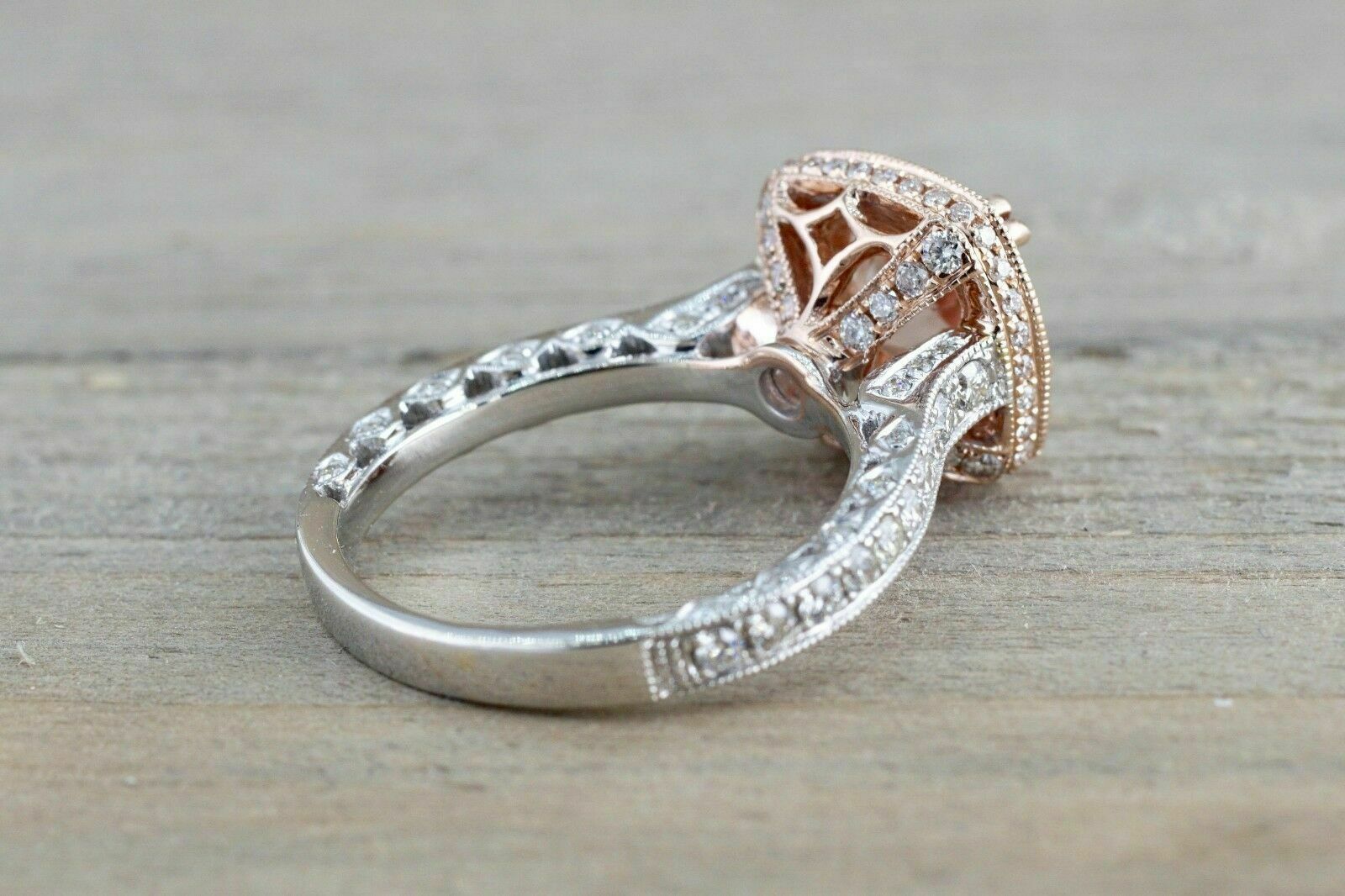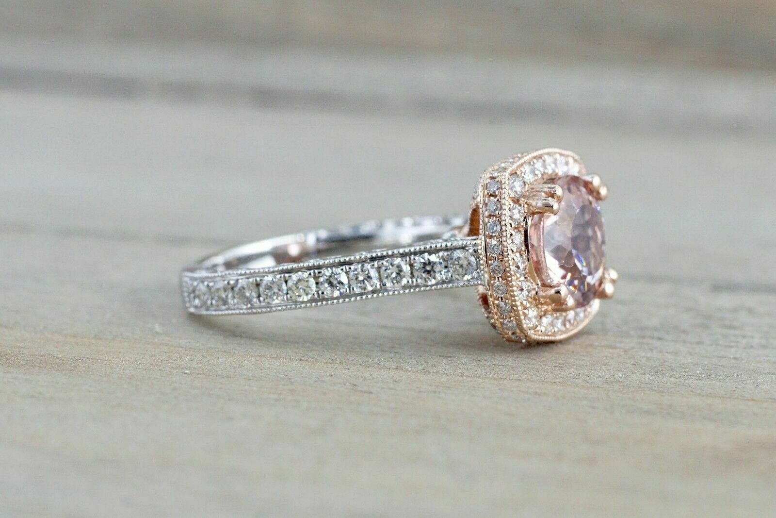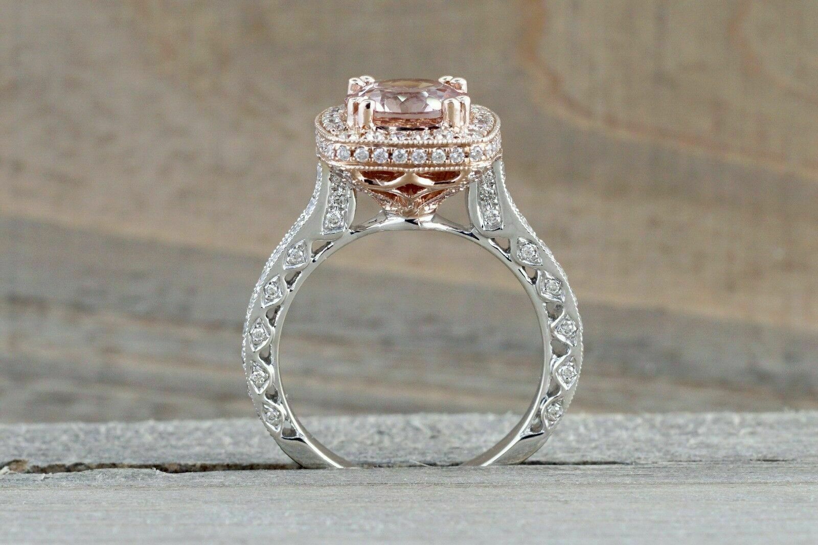 2.4ct Round Peach Morganite Halo Solitaire Engagement Ring 14k Dual Stone Finish