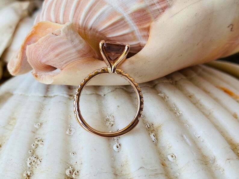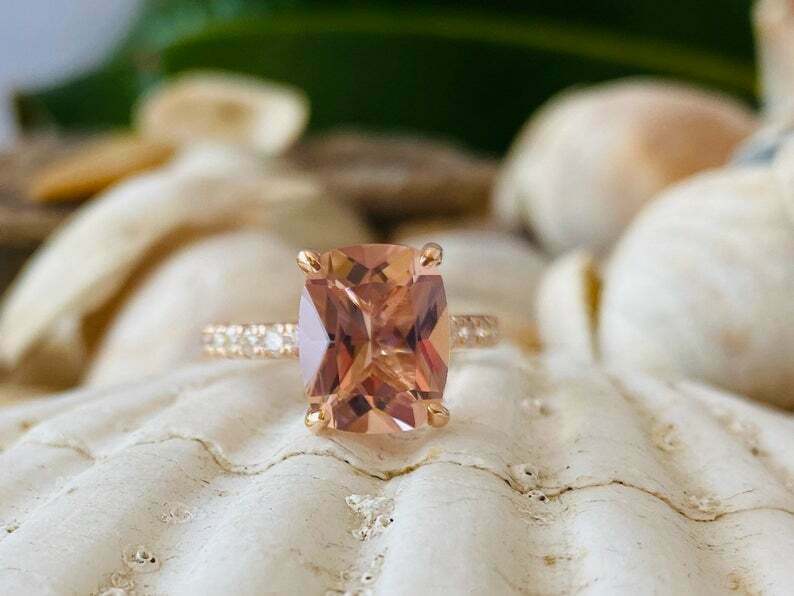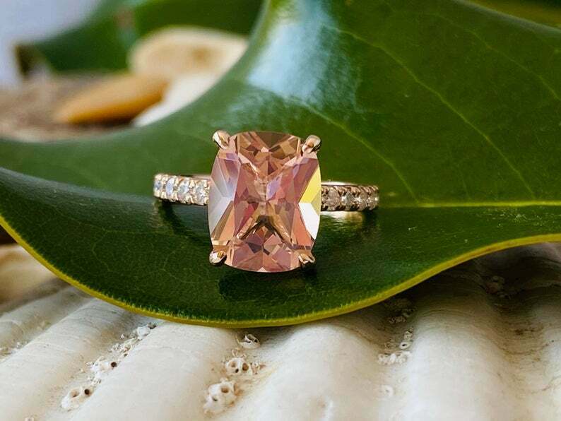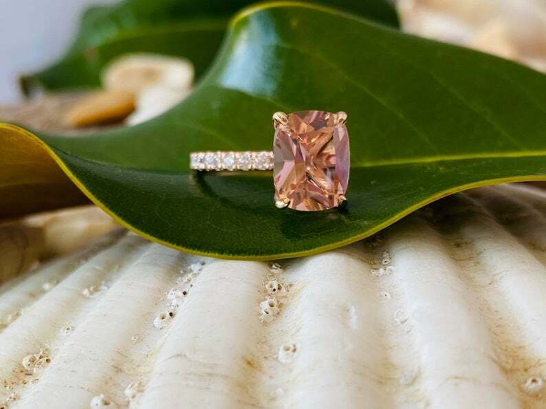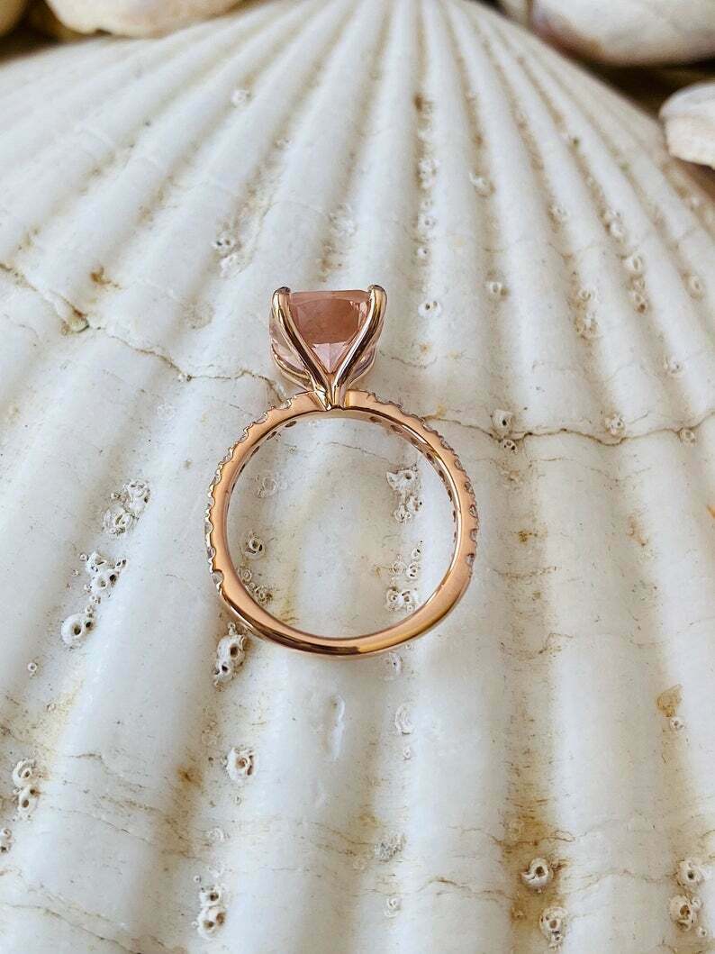 2.5ct Engagement Ring Cushion Cut Peach Morganite Diamond Accent 14k Rose Gold Finish