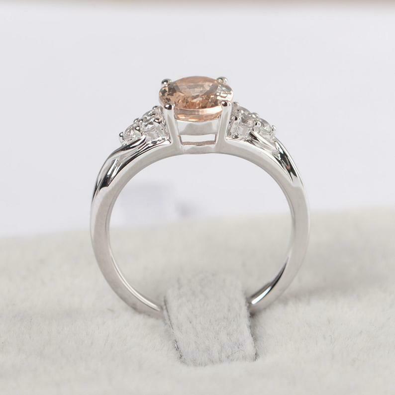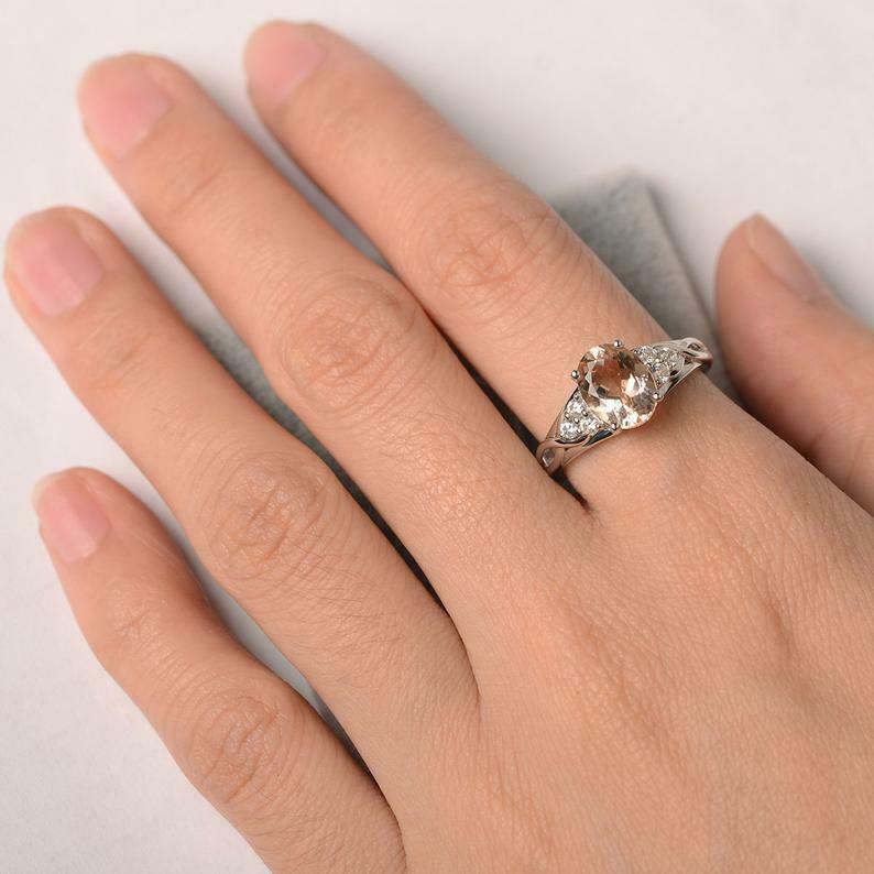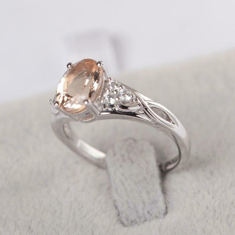 2.5ct Oval Cut Peach Morganite Solitaire Infinity Round Accent Ring 14k White Gold Over