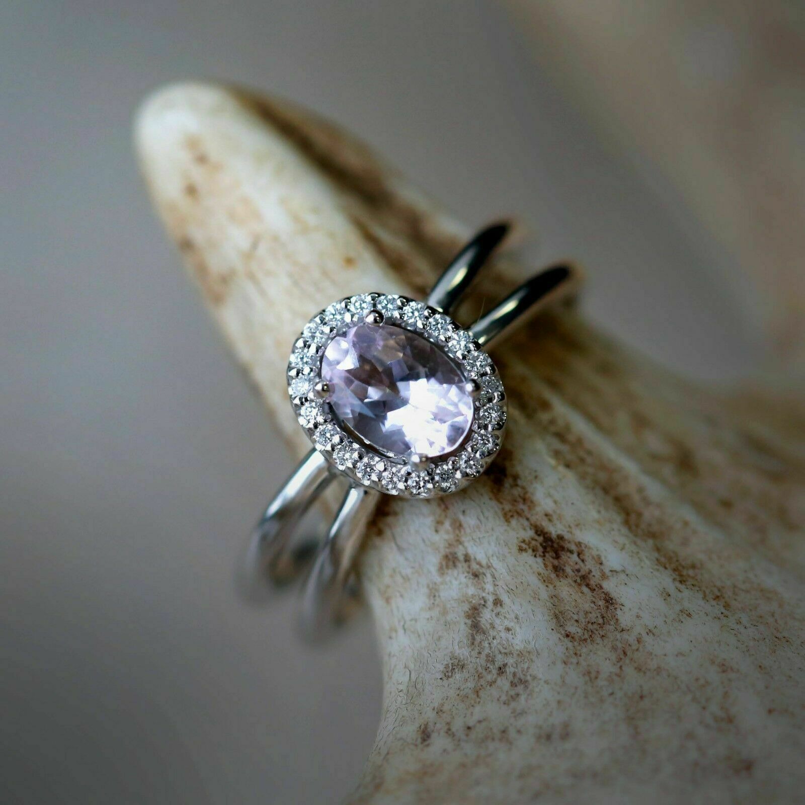 2.5ct Oval Cut Peach Morganite Engagement Ring 14k White Gold Finish Split Shank
