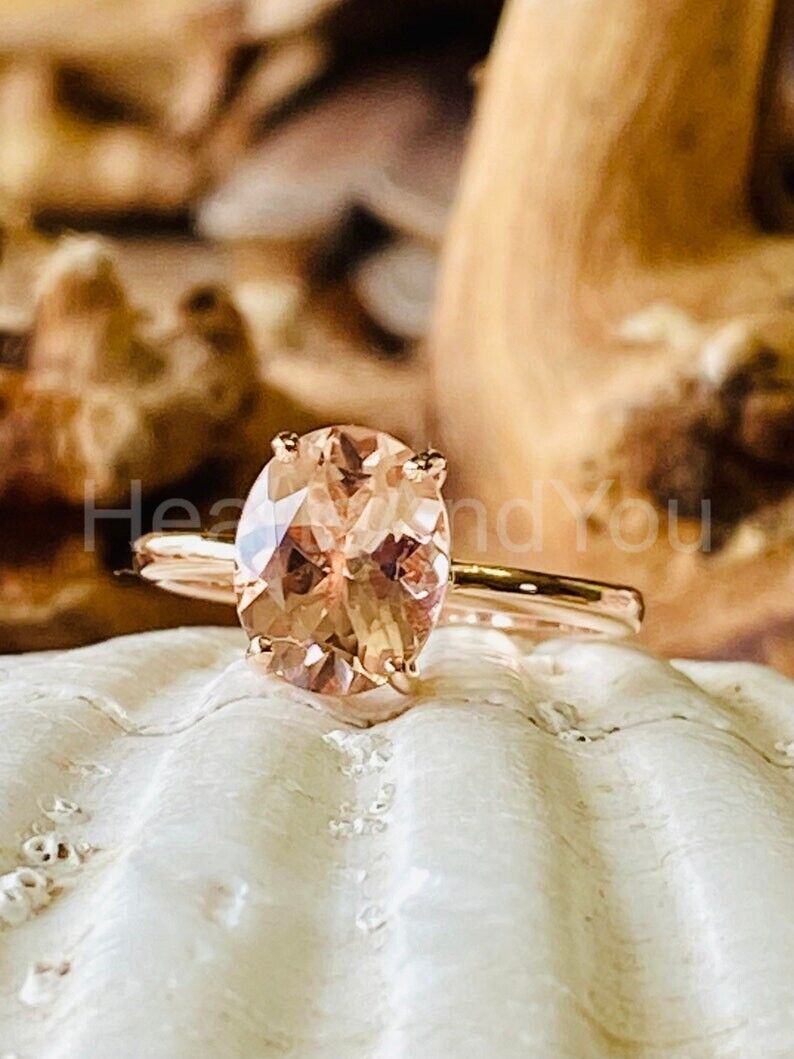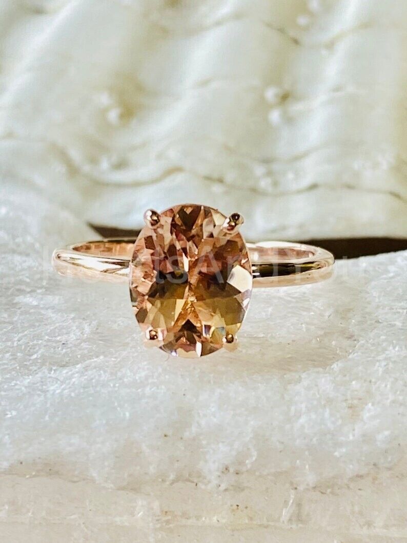 2.5ct Oval Cut Simulated Morganite Solitaire Engagement Ring 14k RoseGold Plated