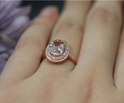 2.5ct Oval Peach Morganite Engagement Ring 14k Rose Gold Over Halo Rope Design