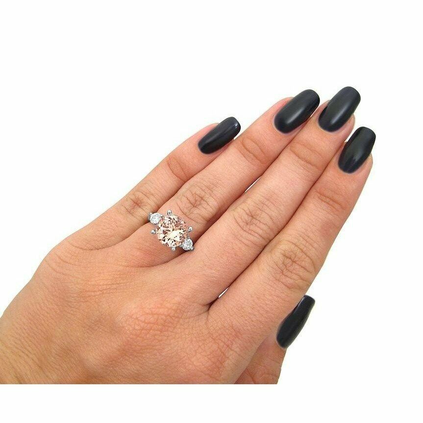 2.5Ct Round Cut Peach Morganite and Diamond Trilogy Ring 14K White Gold Finish