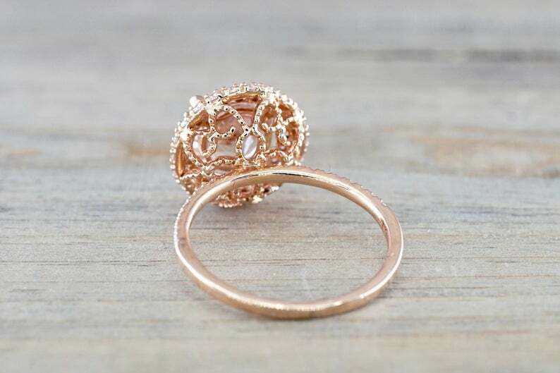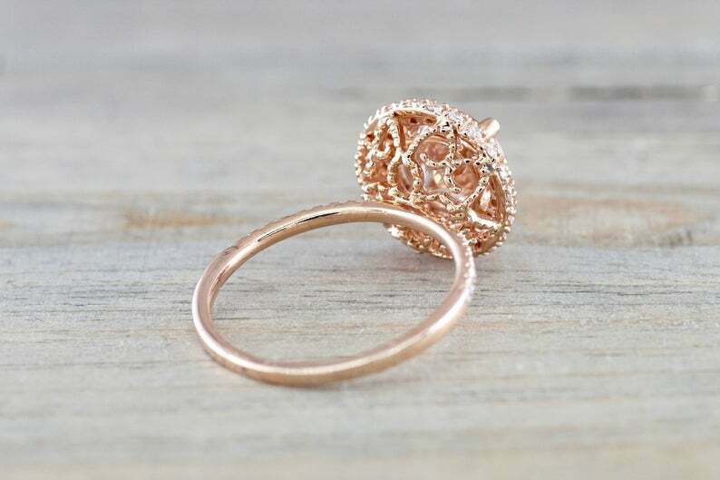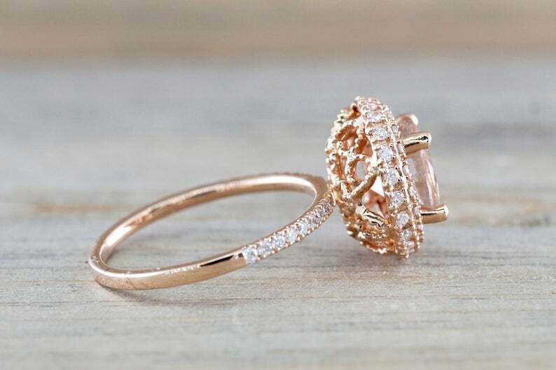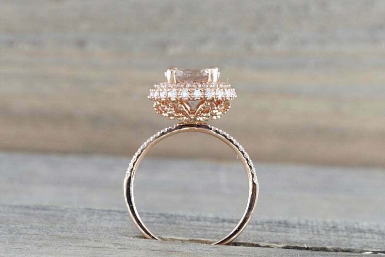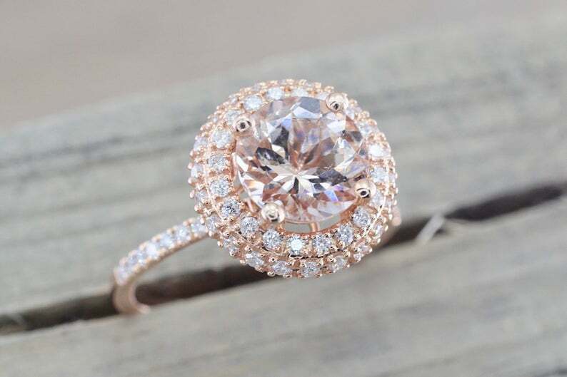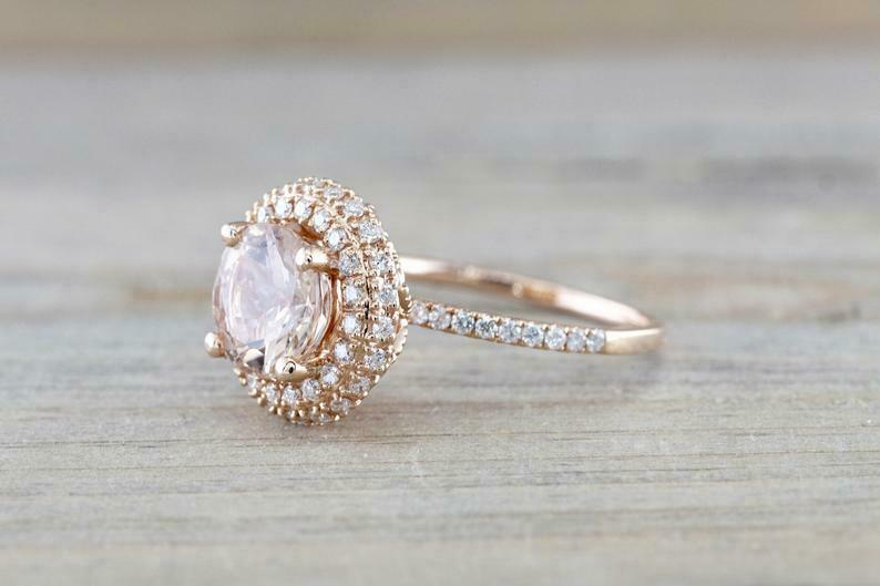 2.5ct Round Cut Peach Morganite Engagement Ring Double Halo 14k Rose Gold Finish