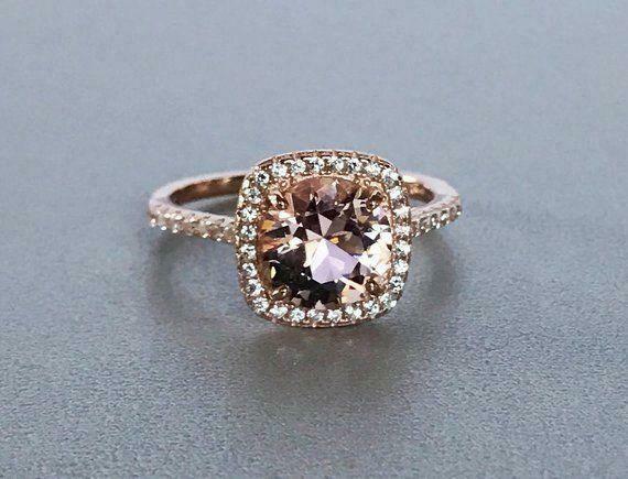 2.5ct Round Cut Peach Morganite Halo Solitaire Engagement Ring 14k RoseGold Over