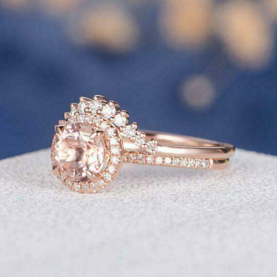 2.5ct Round Peach Morganite Engagement Ring 14k Rose Gold Over Curved Bridal Set