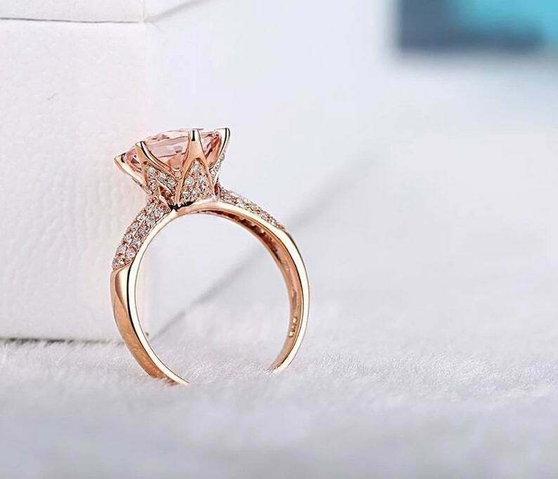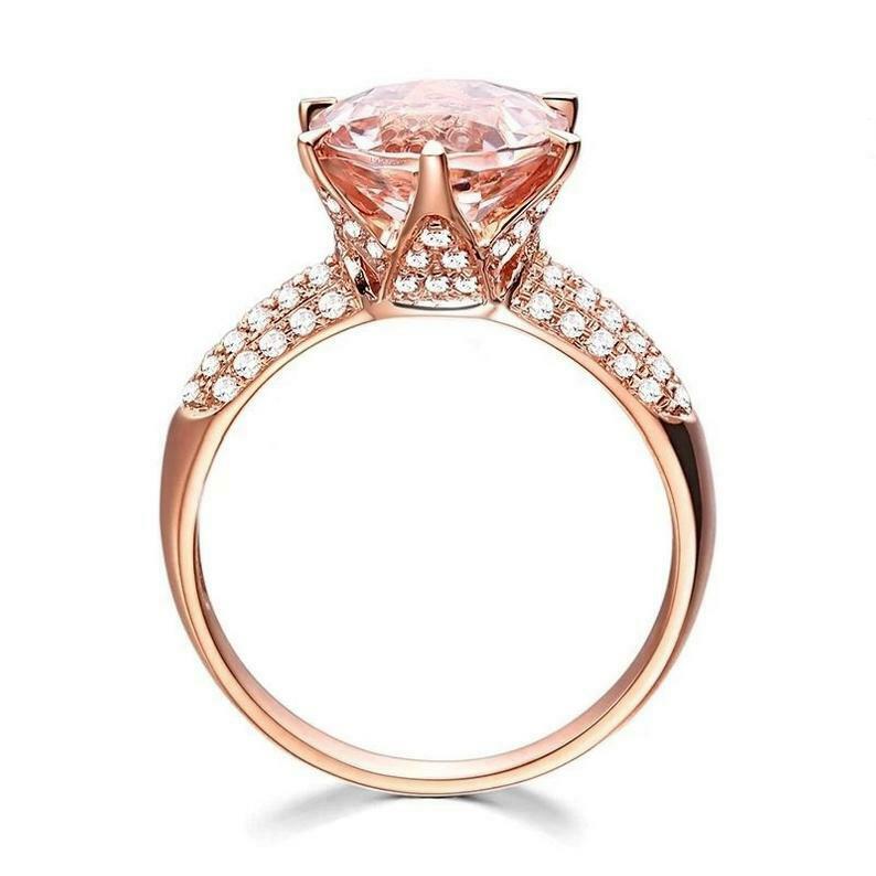 2.6ct Round Cut Peach Morganite Diamond Cluster Accent Ring 14k Rose Gold Finish