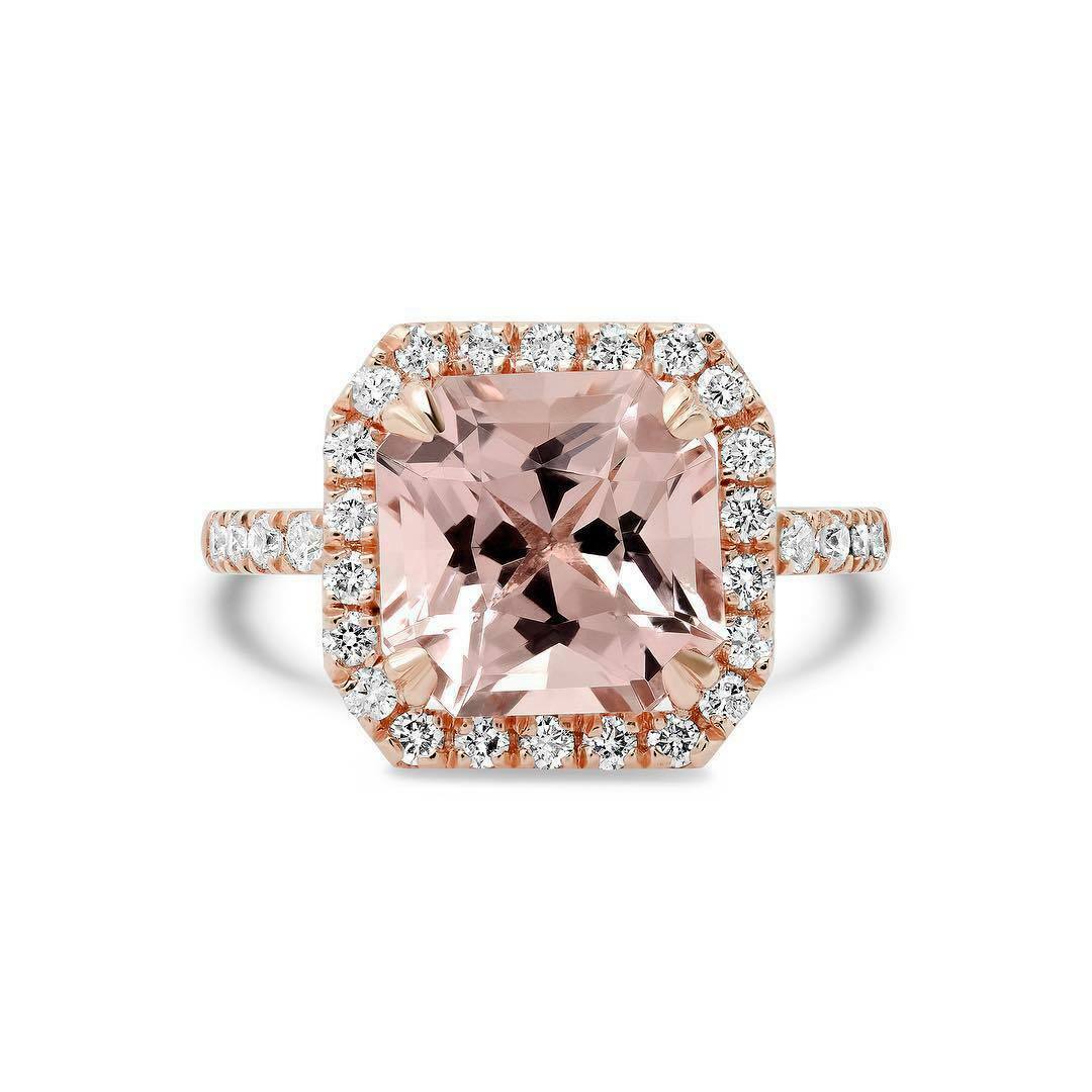 2ct Asscher Cut Peach Morganite Engagement Ring Diamond Halo 14k Rose Gold Over