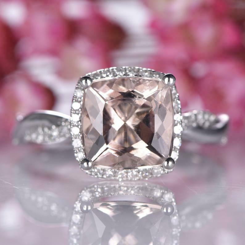2ct Cushion Cut Peach Morganite Engagement Ring Halo Infinity 14k White Gold Over