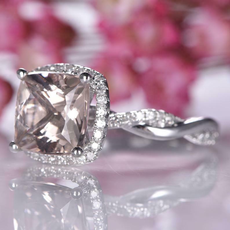 2ct Cushion Cut Peach Morganite Engagement Ring Halo Infinity 14k WhiteGold Over