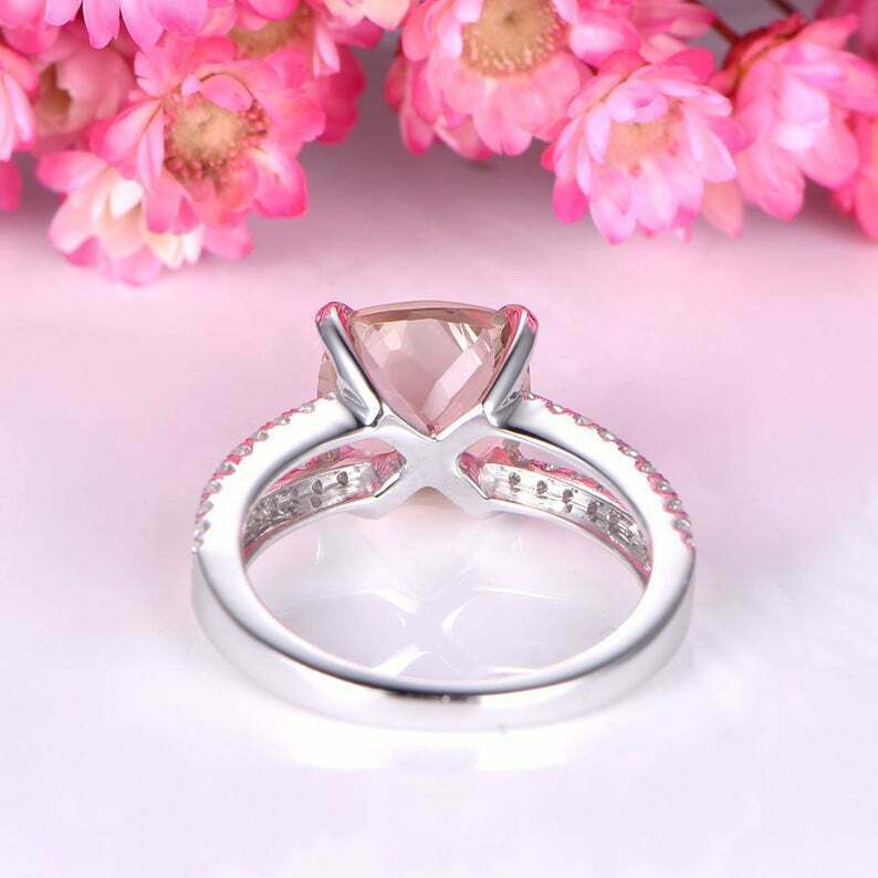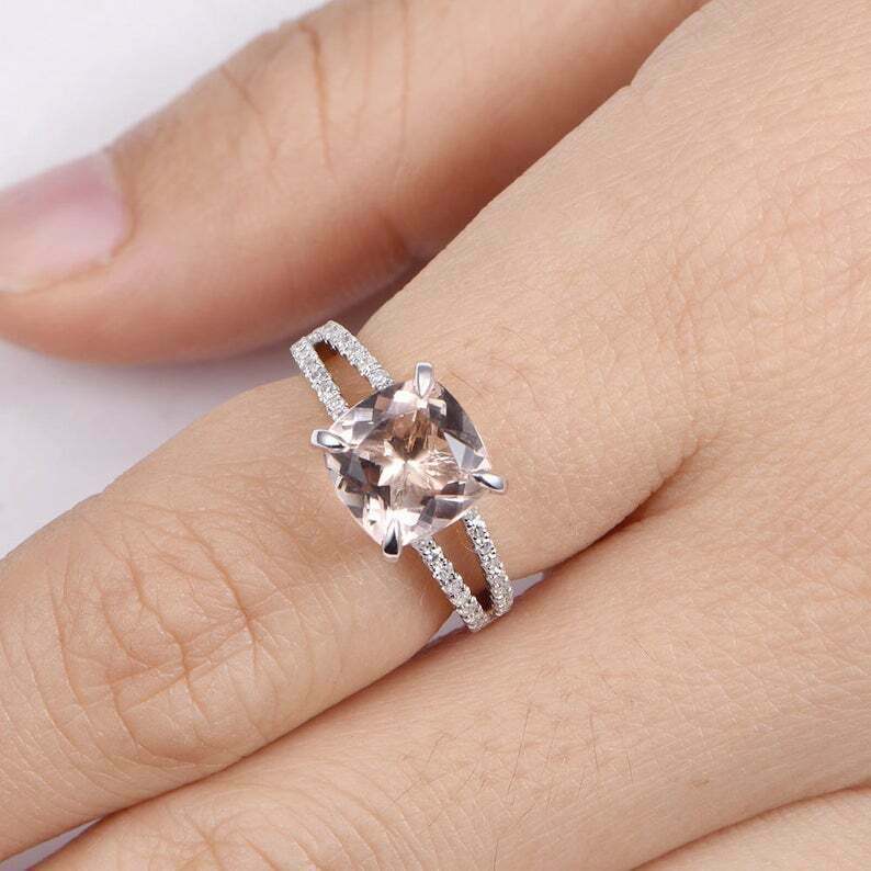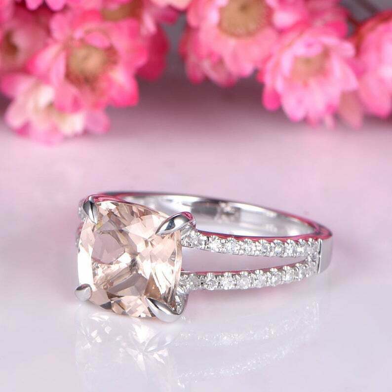 2ct Cushion Cut Peach Morganite Engagement Ring Split Shank 14k WhiteGold Finish