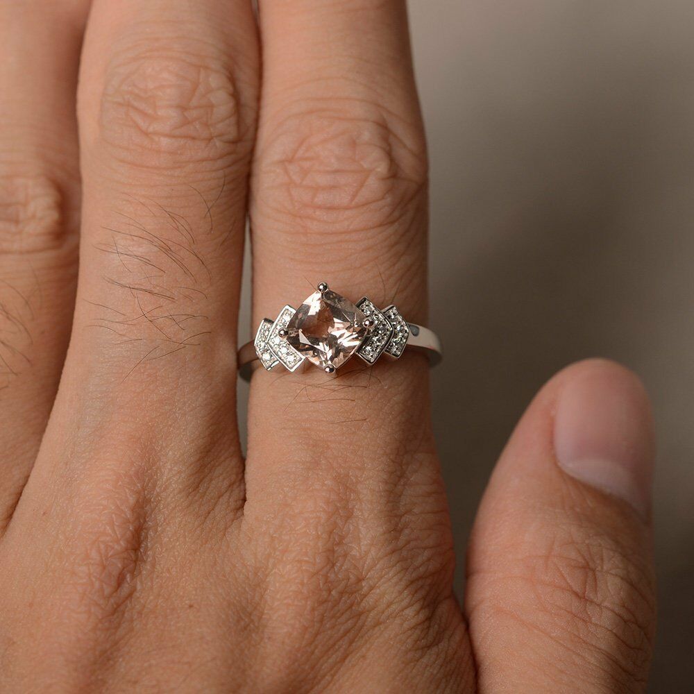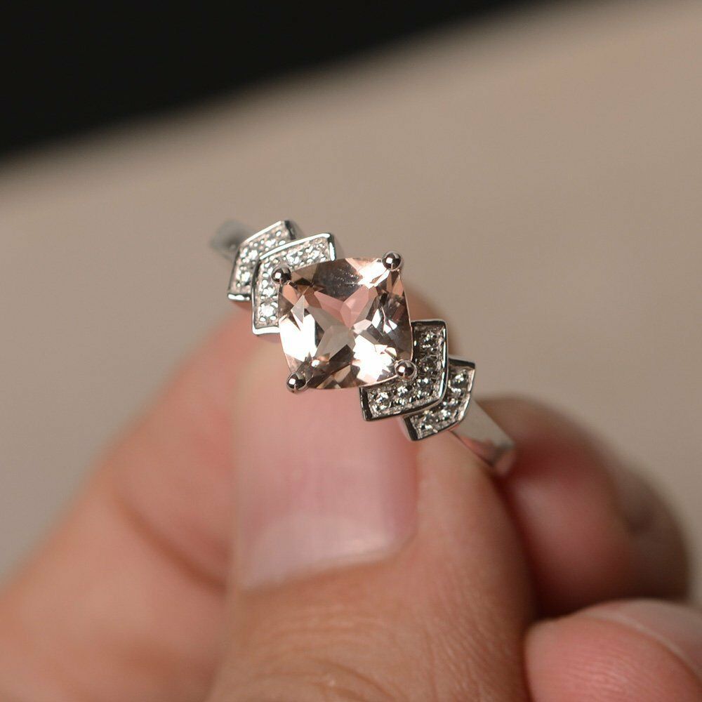 2ct Cushion Cut Peach Morganite Proposal Engagement Ring 18k White Gold Finish