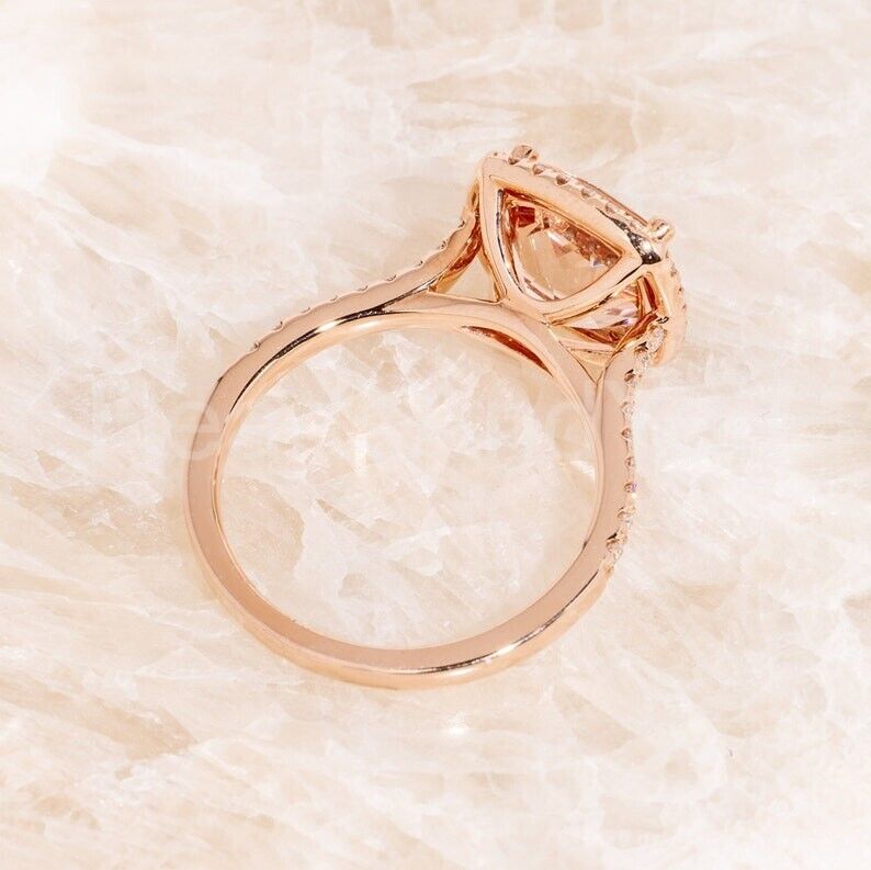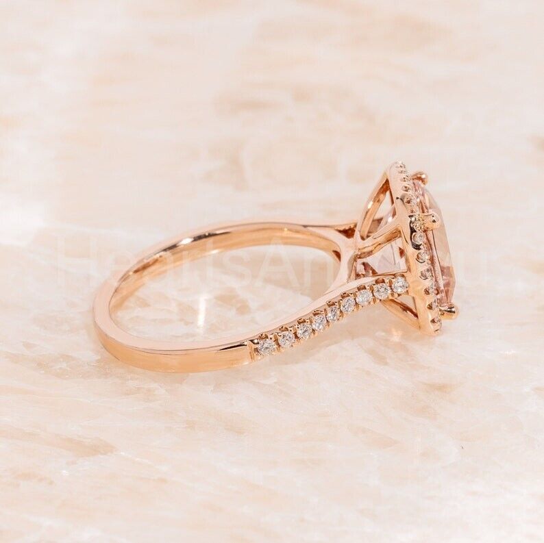 2ct Cushion Cut Simulated Morganite Halo Engagement Ring 14k Yellow Gold Plated