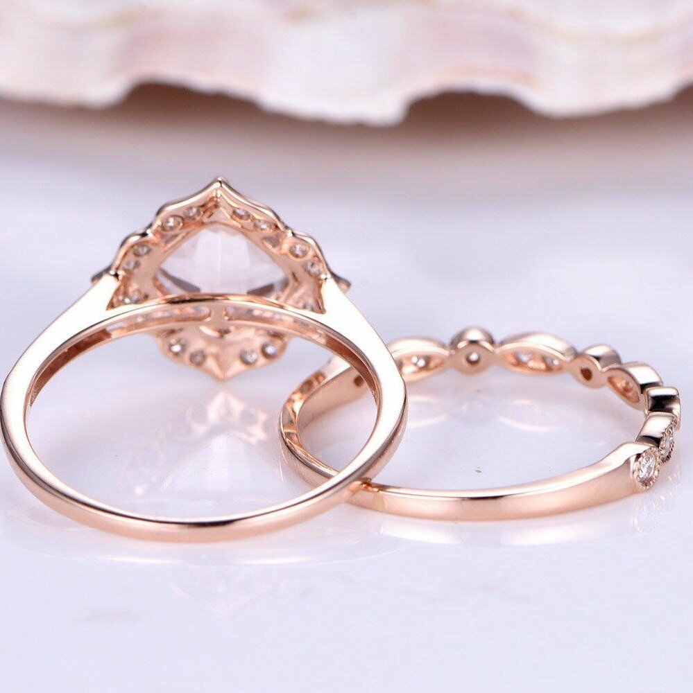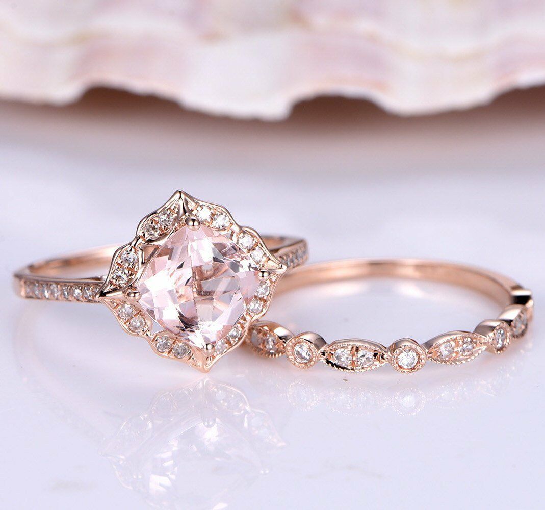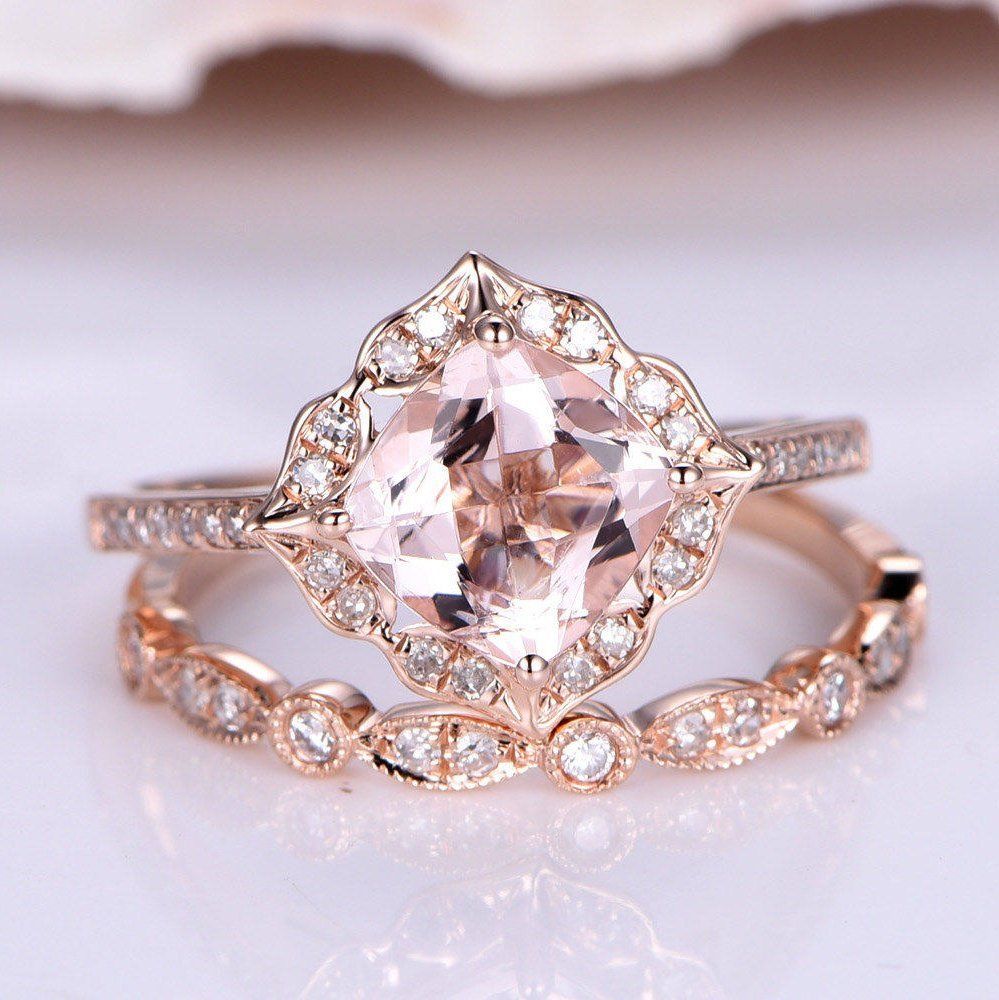 2ct Cushion Peach Morganite Vitange Floral Engagement Ring 14k Rose Gold Finish
