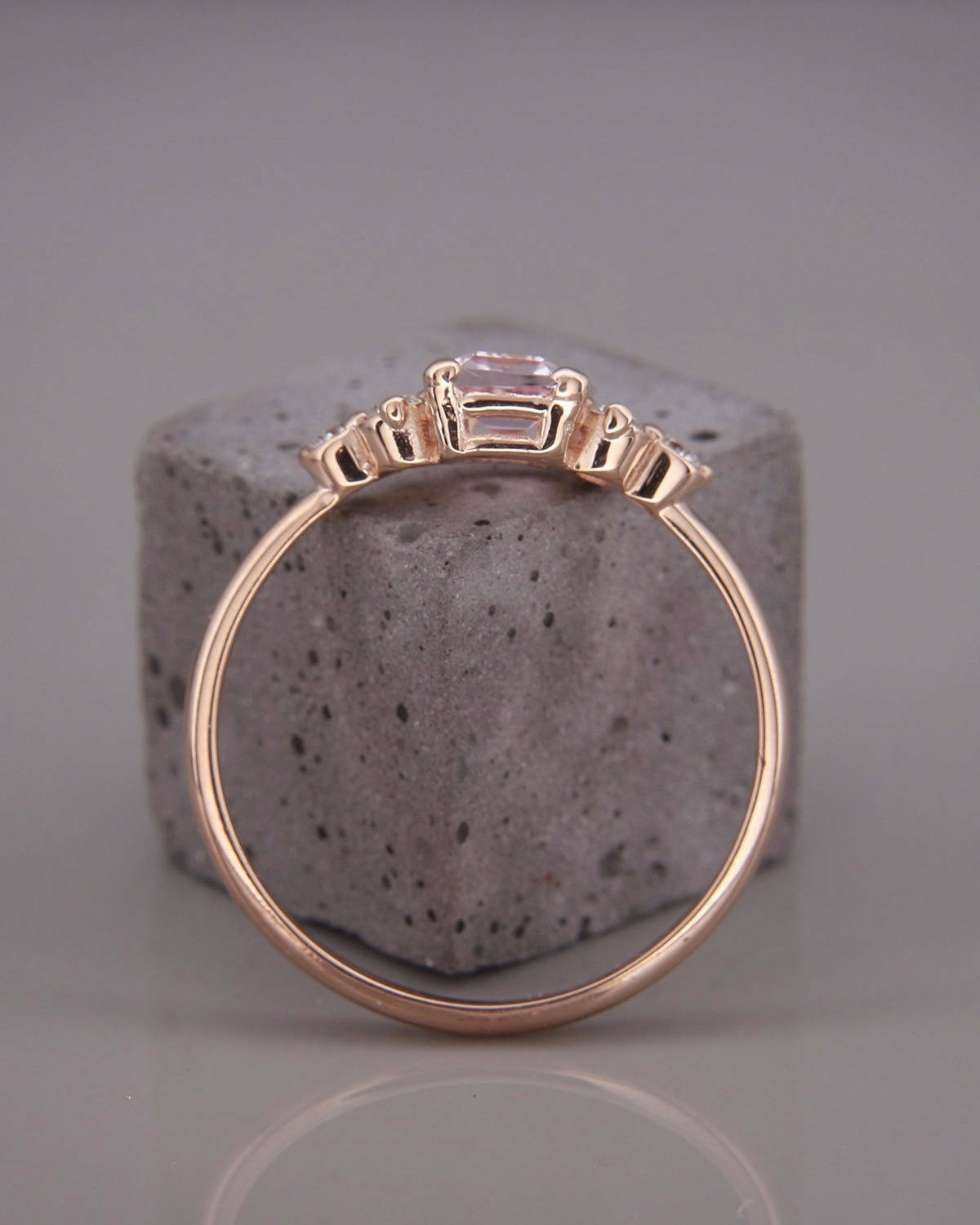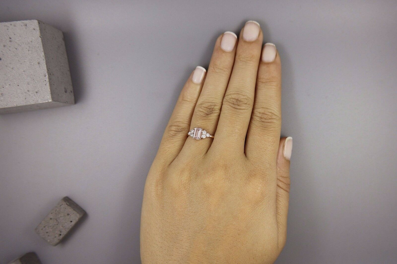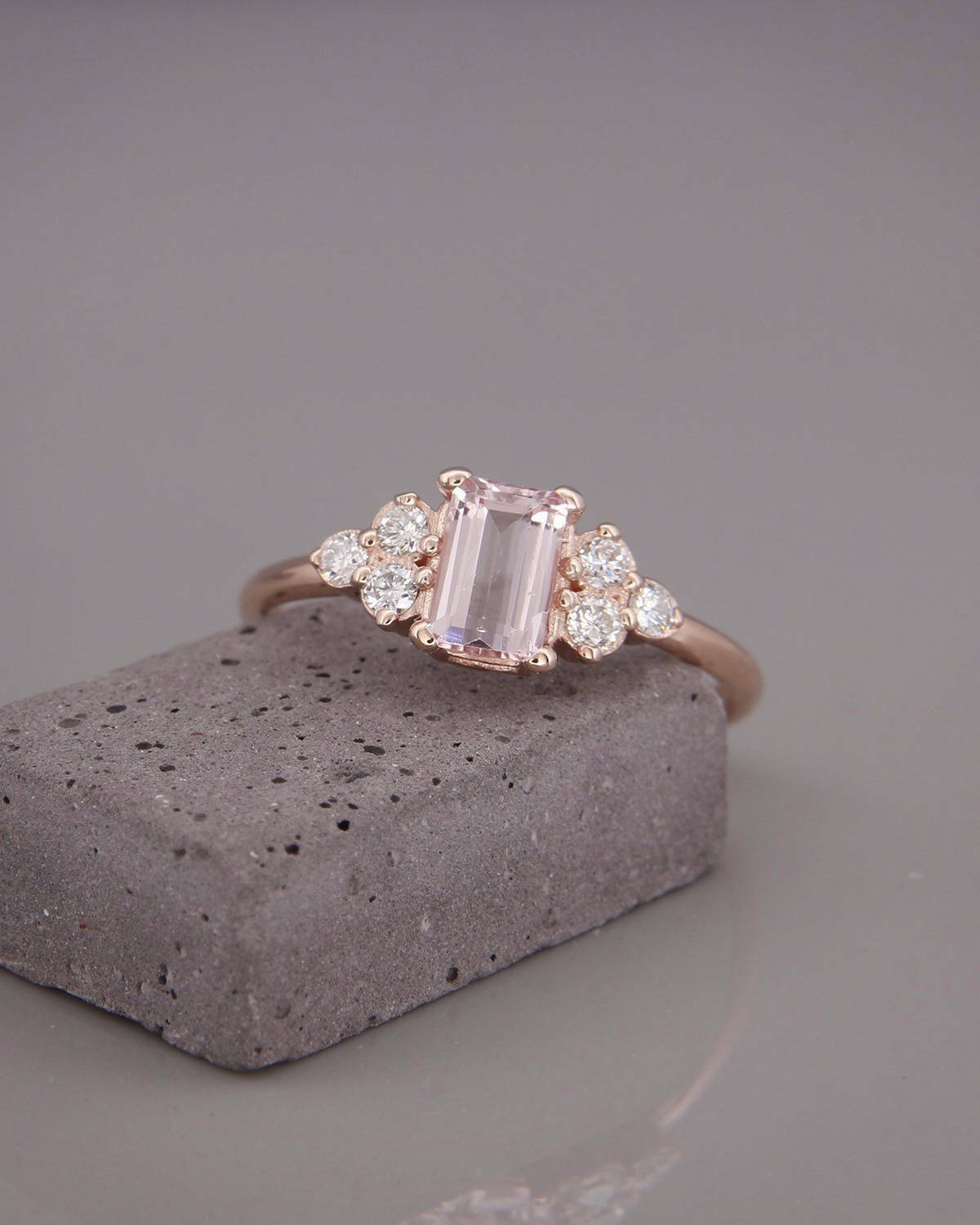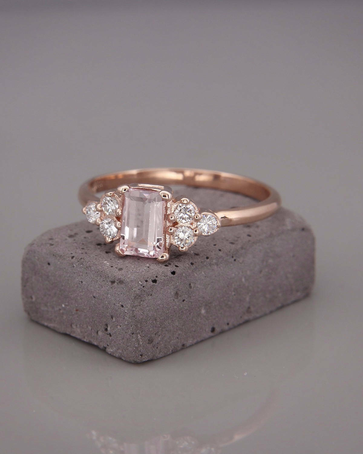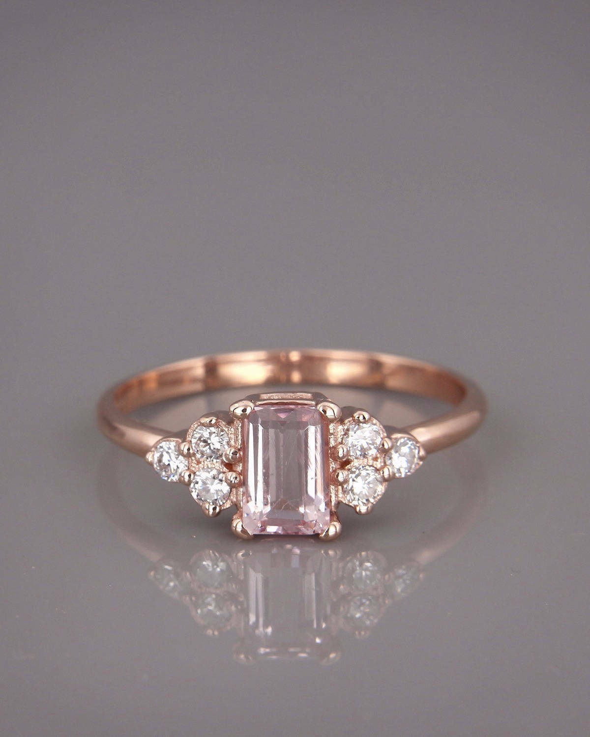 2Ct Emerald Cut Morganite Engagement Ring 14K Rose Gold Finish Diamond Accents