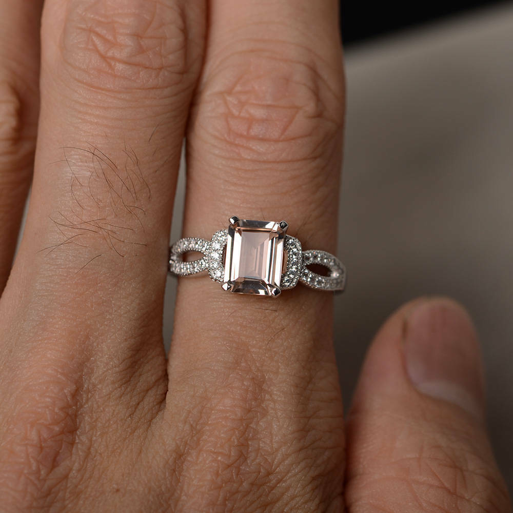 2ct Emerald Cut Peach Morganite Engagement Ring 14k White Gold Finish Split Band