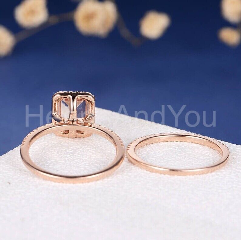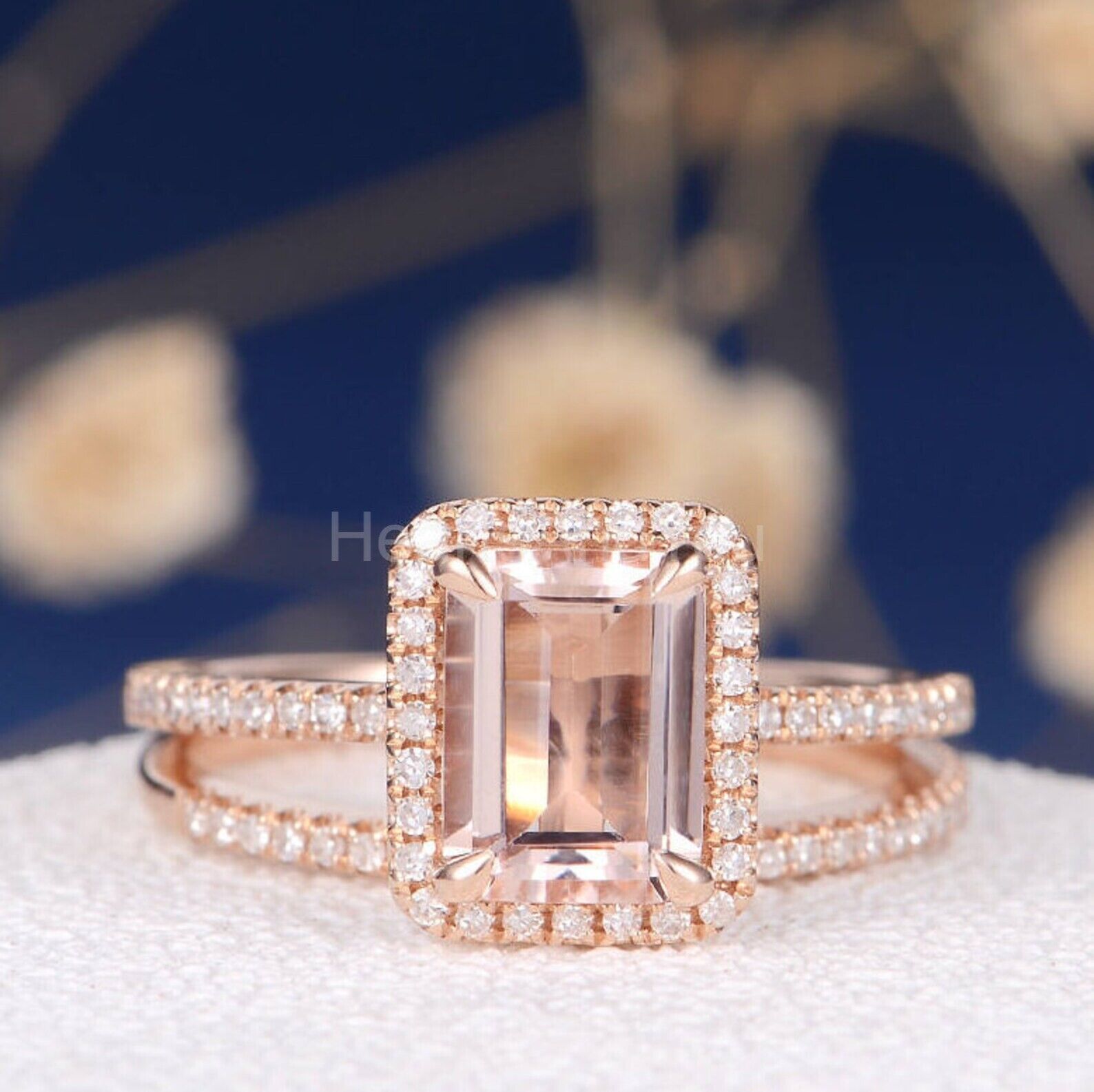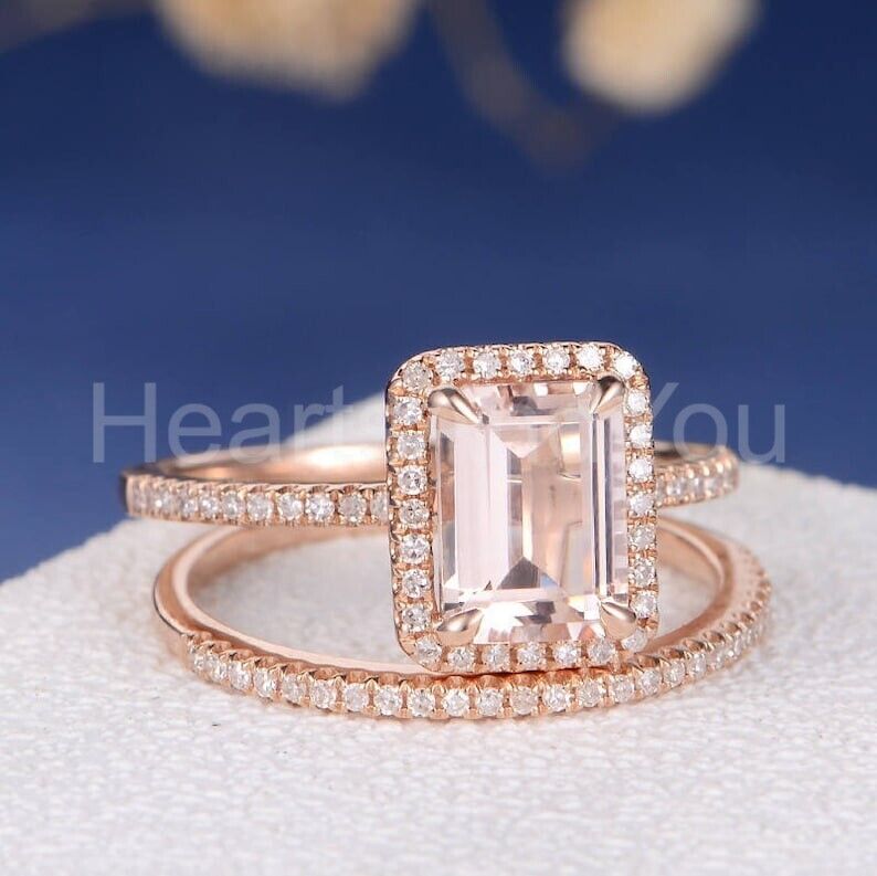2ct Emerald Cut Simulated Morganite Half Eternity Bridal Set 14k Rose Gold Plated