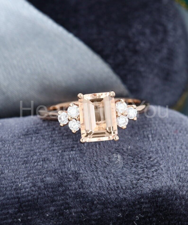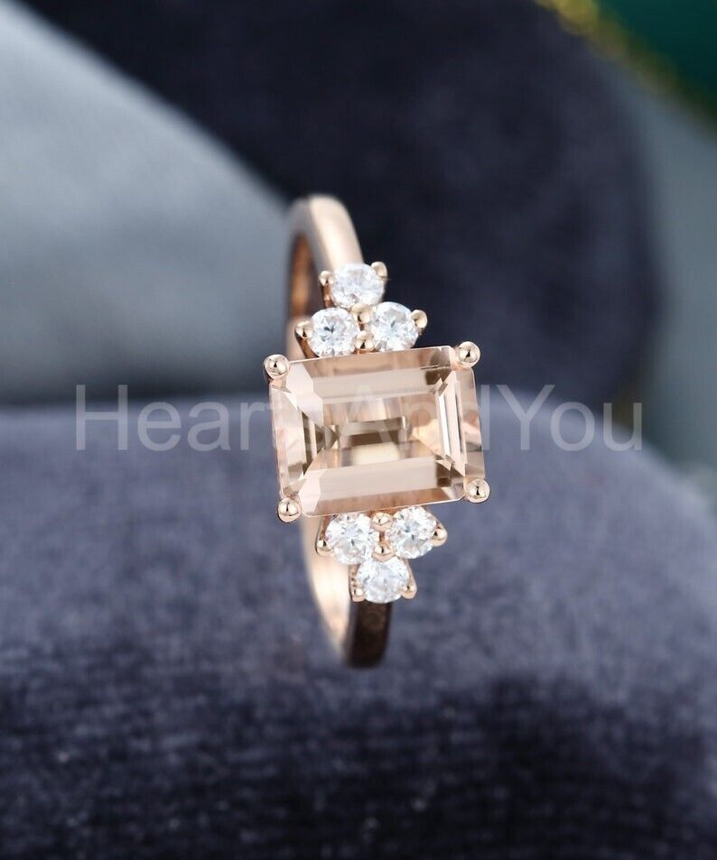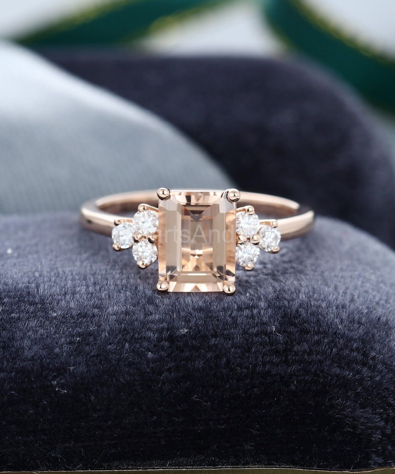 2ct Emerald Cut Simulated Morganite Petite Engagement Ring 14k Rose Gold Plated