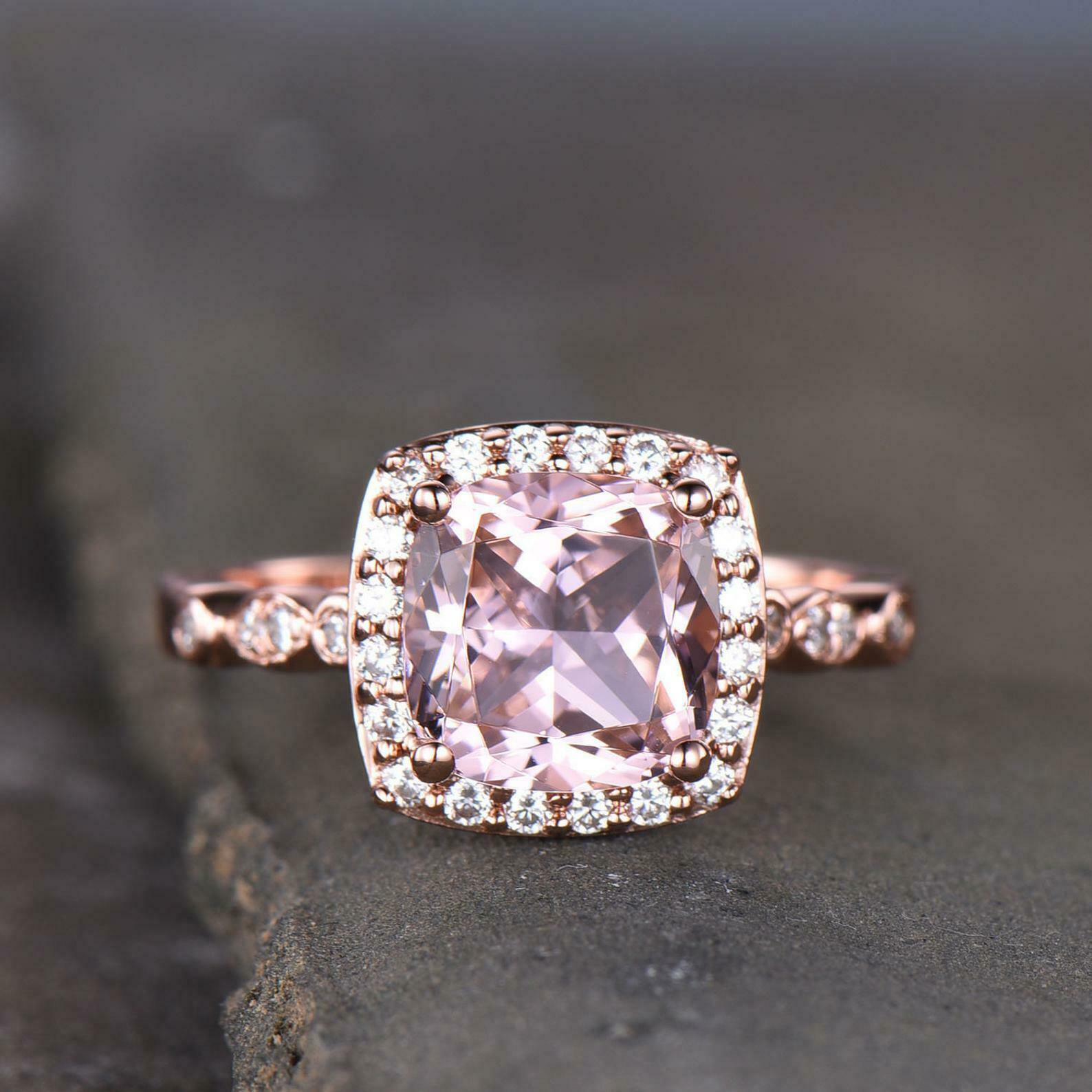 2ct Engagement Ring Cushion Cut Morganite Round Accent Halo 14k Rose Gold Finish