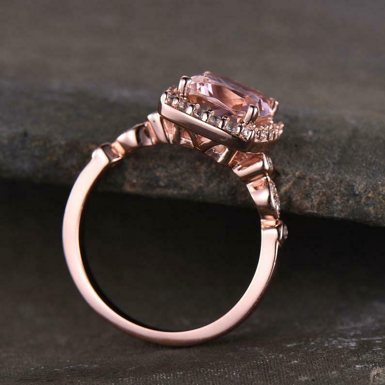 2ct Engagement Ring Cushion Cut Peach Morganite Round Accent Halo 14k Rose Gold Finish