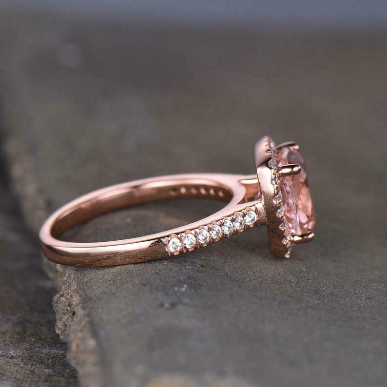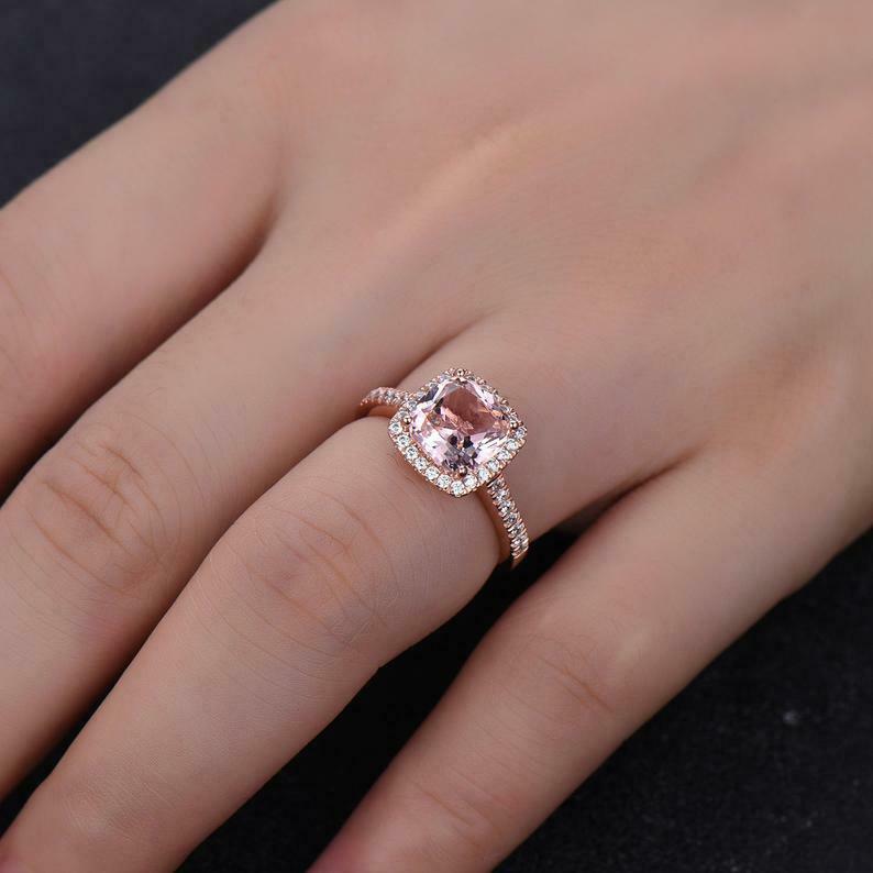 2ct Engagement Ring Cushion Cut Peach Morganite Round Accents Halo 14k Rose Gold Over